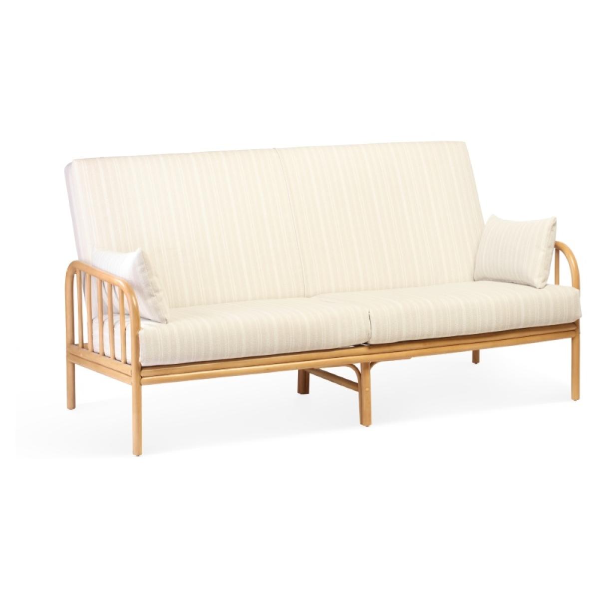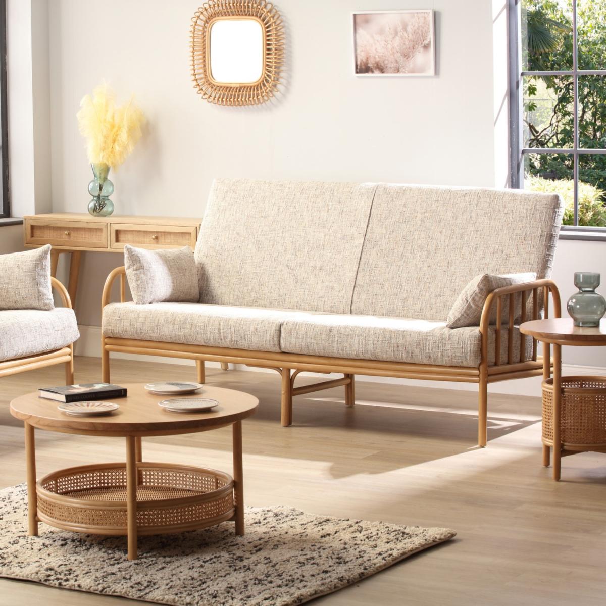 This Desser Aspen 3 Seater Sofa - Light Oak offers a perfect blend of comfort and style, making it an inviting addition to any living space. Crafted from high-quality natural rattan, the sofa features a sturdy frame with beautifully curved armrests, adding a touch of elegance to its design. The natural rattan ensures durability and sustainability, making the Aspen range an ideal choice for those who appreciate both style and eco-friendly living. The back also differentiates from any of our other ranges with its firmness whilst also being fully upholstered and fixed in to place. Soft, foam filled seat cushions with supportive mix of fibre and foam filled back cushion (Back cushions aren’t removable) Includes 2 bolster cushions resting on the arms Hand-crafted & hand-weaved cane frame through sustainable farming Dacron wrap is used to help prevent worn areas forming on your cushions Pirelli Webbing ensures that your frames have the required support Double frame design for a supportive and long lasting frame 1 Year Manufacturer's Guarantee. Dimensions: Height 98cm Width 190cm Depth 93cm Seat Area W 160cm x D 59cm Back Cushion Height 61cm Arm Height 64cm Floor to seat Height 51cm All screens vary in colour reproduction and whilst every effort has been made to display the colour as accurately as possible it is for guidance only.