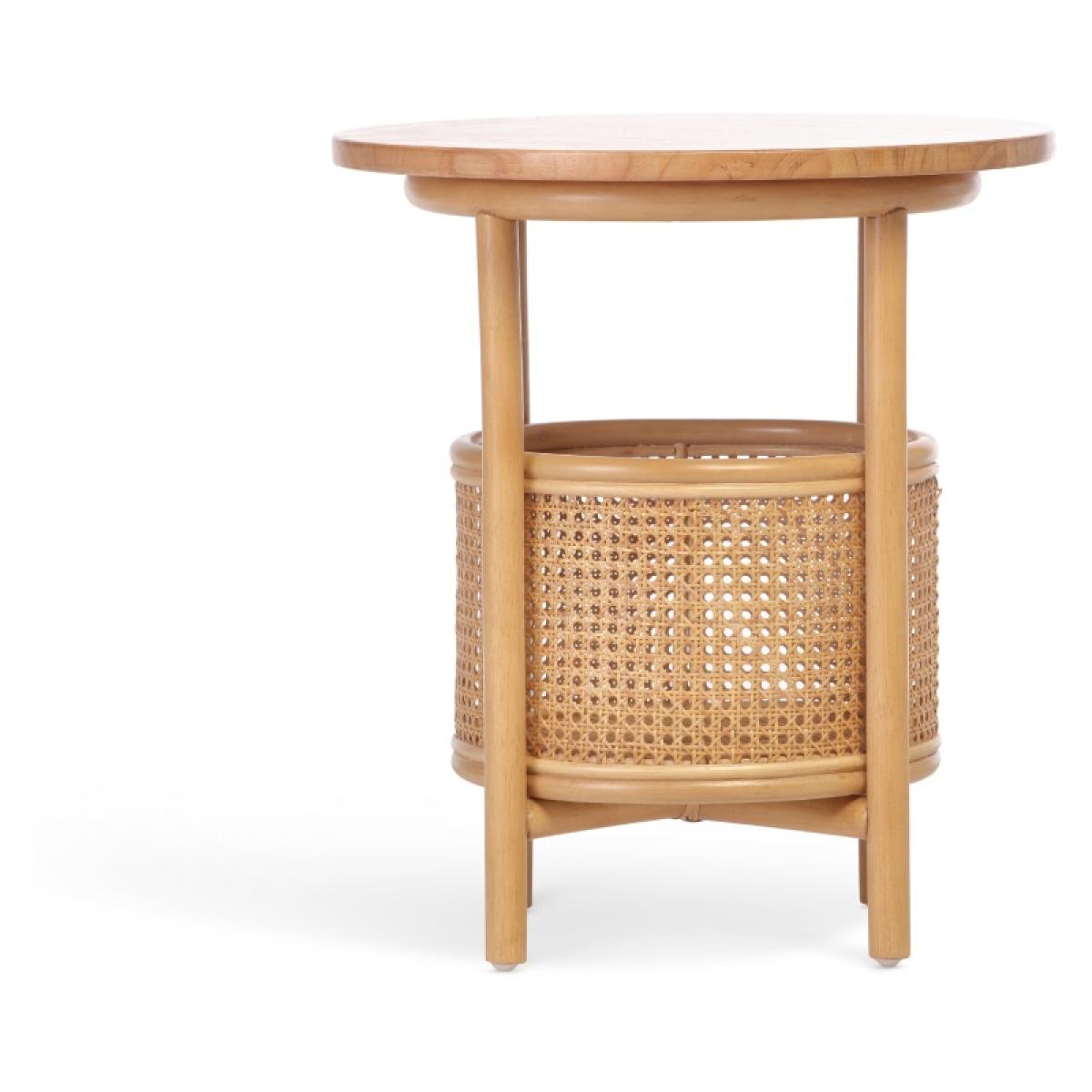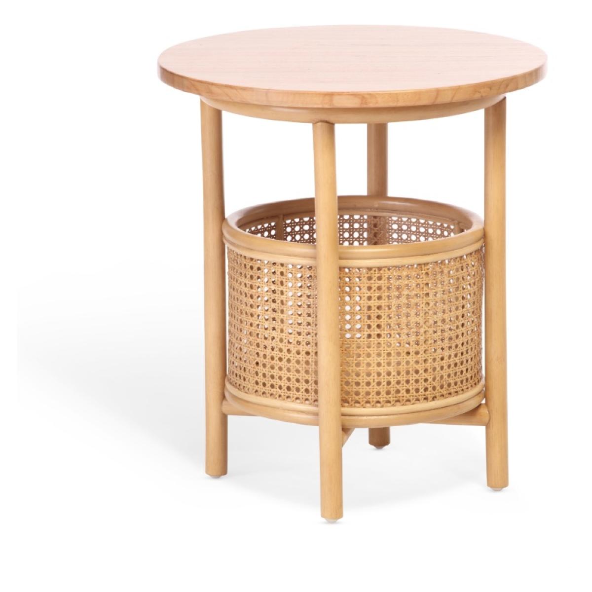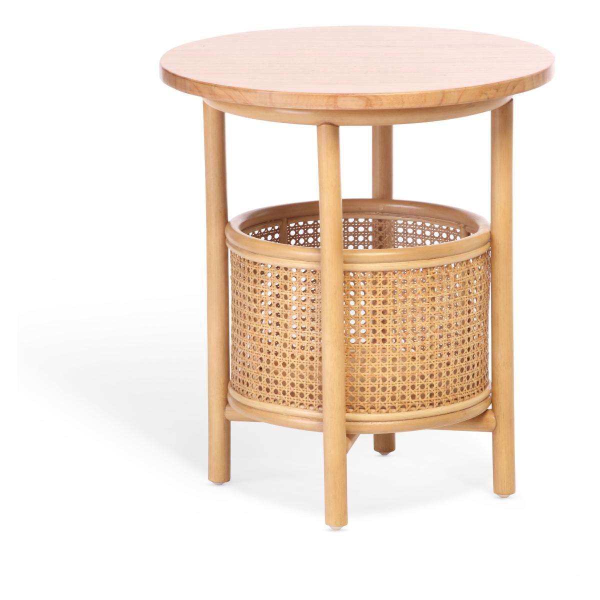 Our Desser Aspen Lamp Table - Light Oak, crafted from natural rattan, captures a fusion of rustic charm and modern sophistication. The lovely lamp table also features its distinctive descending cane poles and consists of a smooth laminated tabletop and a cane mesh basket to store some bits and bobs away underneath. Double frame design for a supportive and long-lasting frame Hand-crafted & hand-weaved cane frame through sustainable farming Storage space Smooth tabletop 1 Year Manufacturer's Guarantee. Dimensions: Height 58cm Width 51cm Depth 51cm All screens vary in colour reproduction and whilst every effort has been made to display the colour as accurately as possible it is for guidance only.