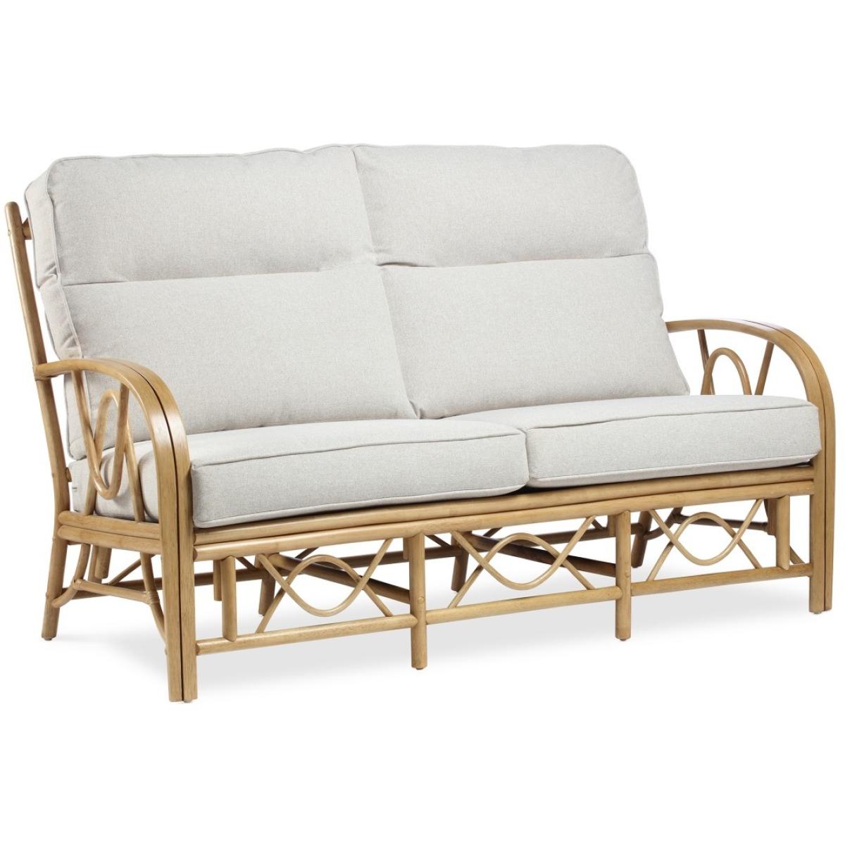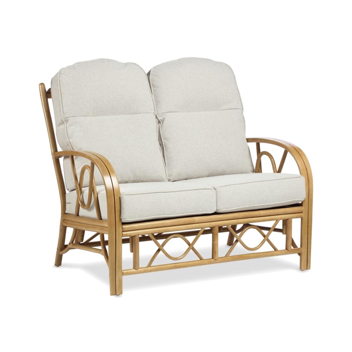 The large Bali 2 seater sofa combines classic cane pole shapes together with smooth armrests allowing for perfect relaxation, offering a stylish and traditional look. In a stunning light oak wash finish, it brings a modern finish to a contemporary design for your conservatory, living room or summerhouse. Double frame design also provides sturdiness that is made to last. Comfortable foam-filled seat cushions. Supportive fibre-filled back cushions. Dacron Wrap is used to help prevent loose, worn areas forming on cushions. Hand-crafted & hand-weaved cane frame through sustainable farming.  1 Year Manufacturer's Guarantee. Dimensions: 108cm (H) x 112cm (W) x 90cm (D)