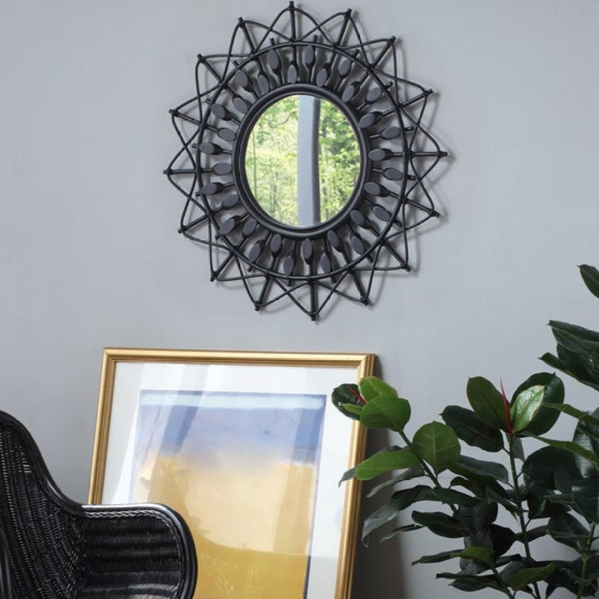 * Unique woven rattan frame * Available in natural or black * Wall mirror * Boho style Add a touch of boho charm to your space with the Desser Round Rattan Wall Mirror. Handmade from natural rattan, its unique woven frame is available in a choice of natural or black to suit your style. The circular mirror helps create a sense of space while adding character to any room. Lightweight and easy to hang with just one nail, it’s a fuss-free way to refresh your décor. Durable, stylish and full of personality.