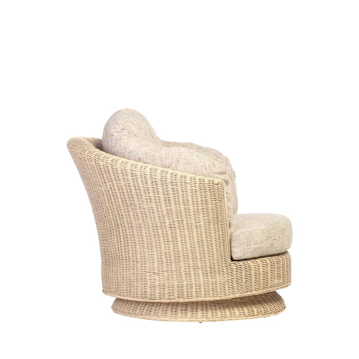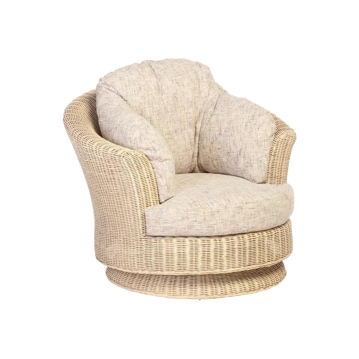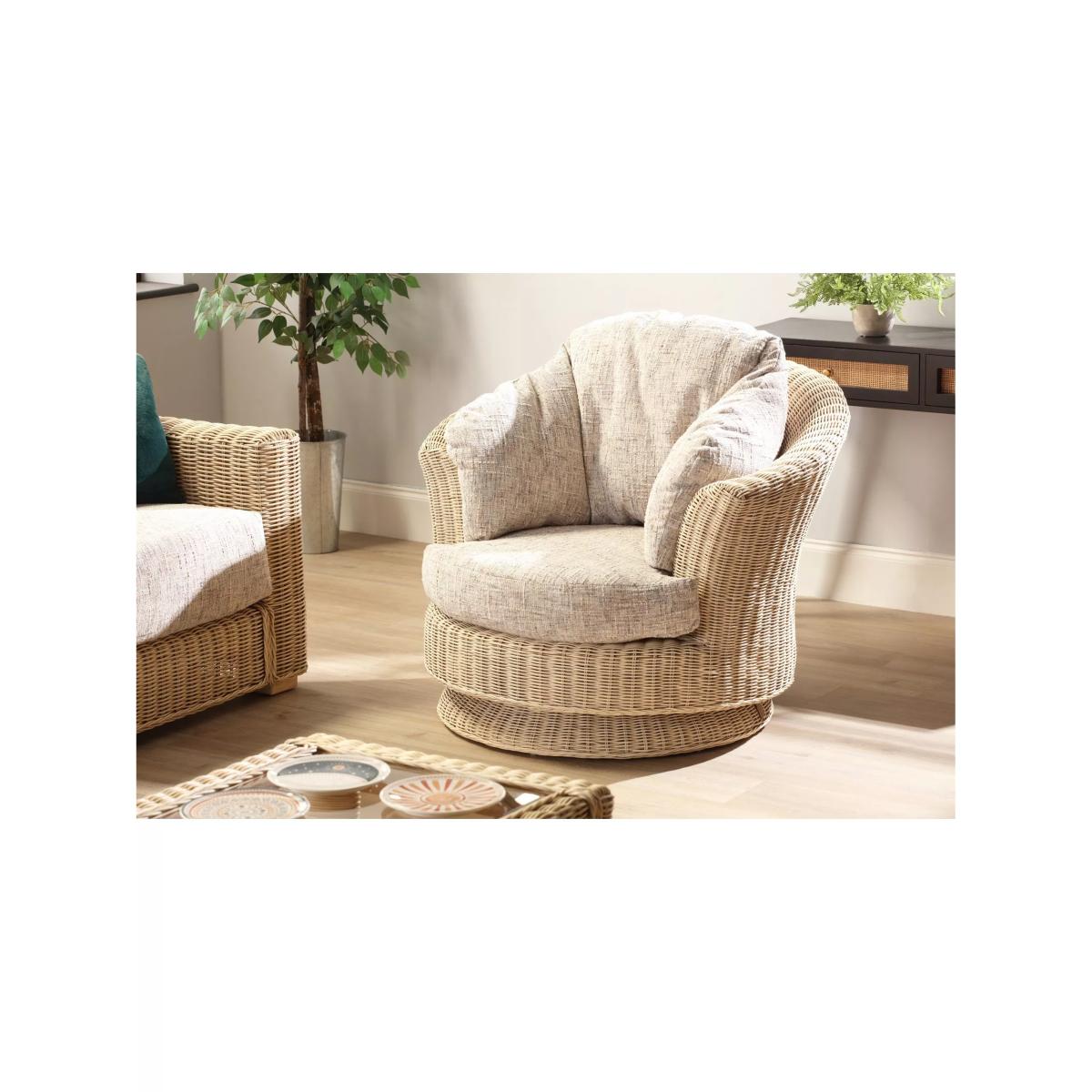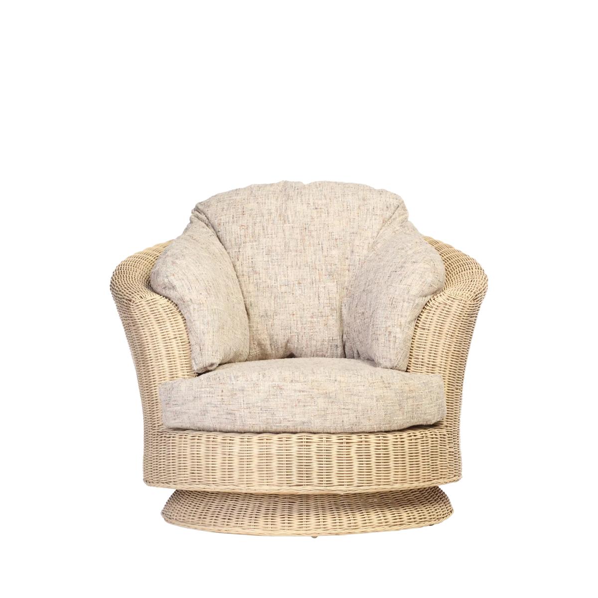 Swivel chair, handmade from natural and with cushions manufactured in the UK. Perfect for your orangery, summerhouse, conservatory or living room.