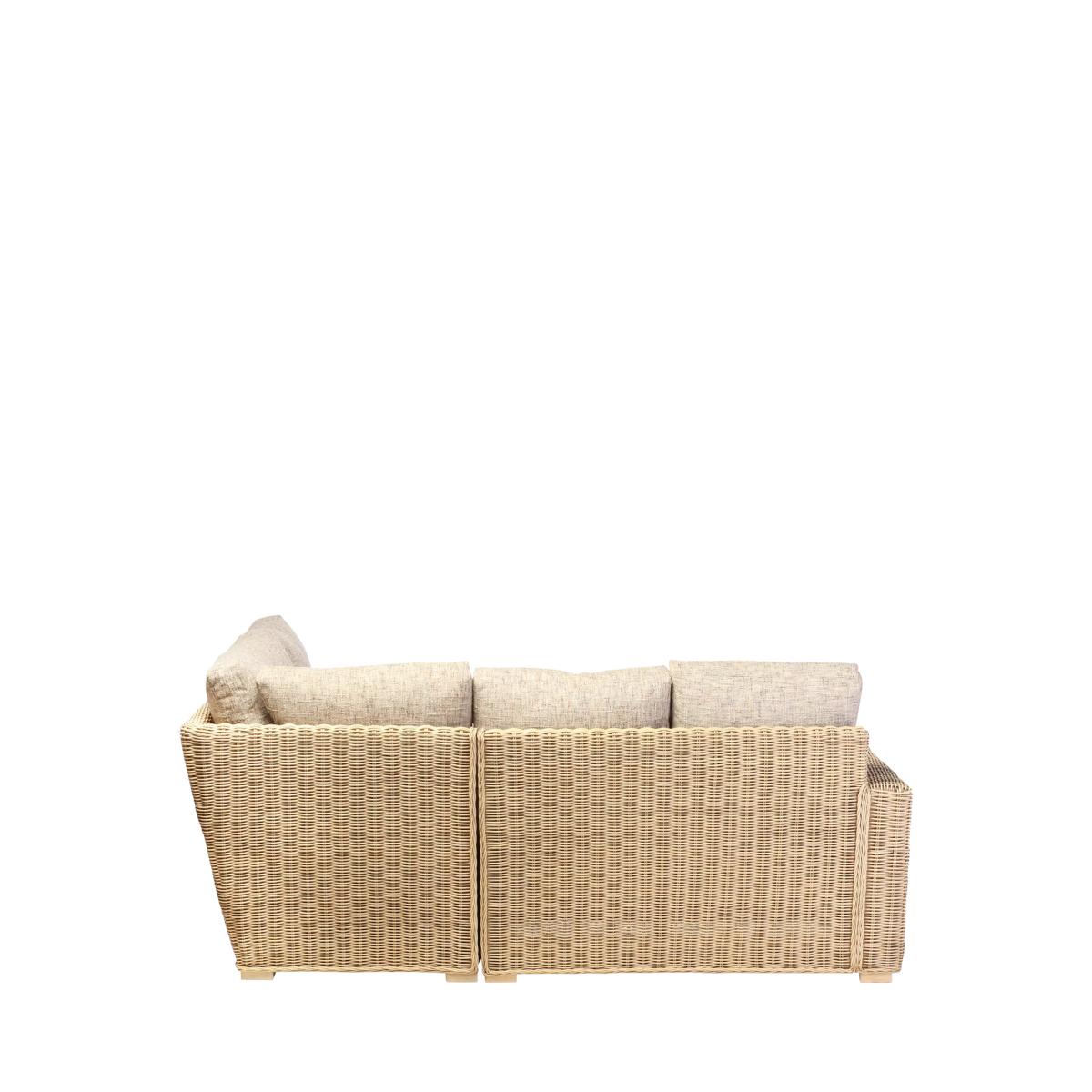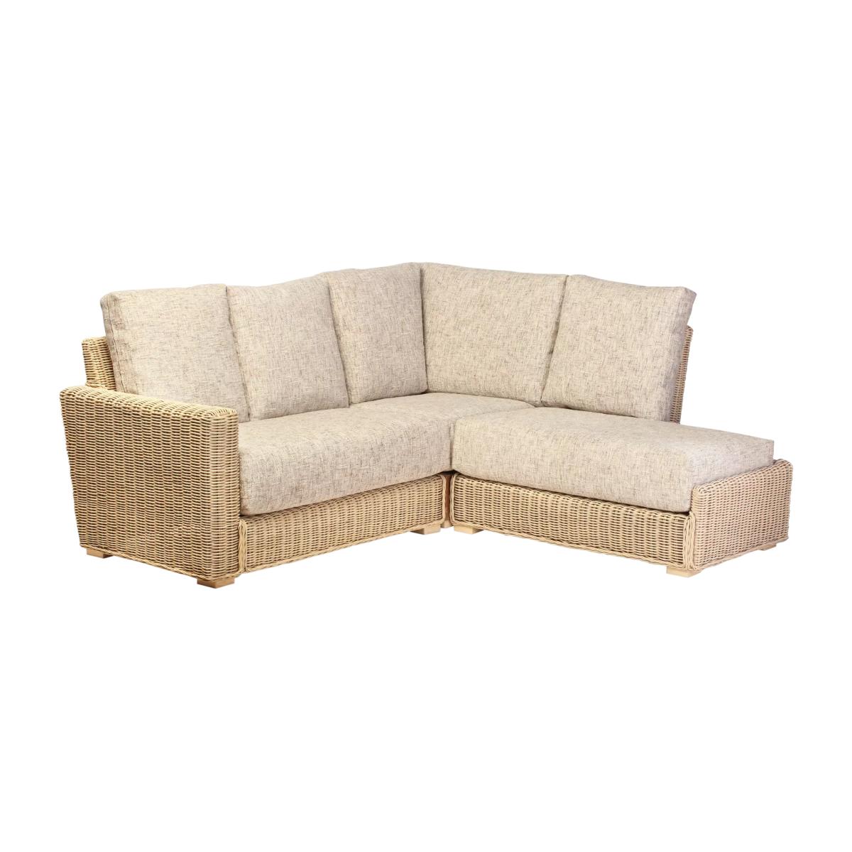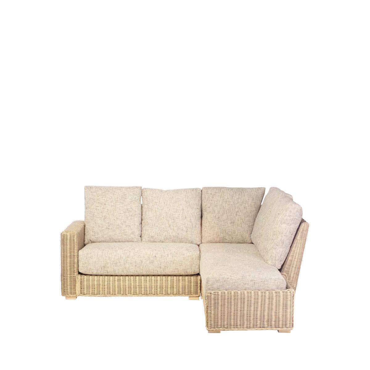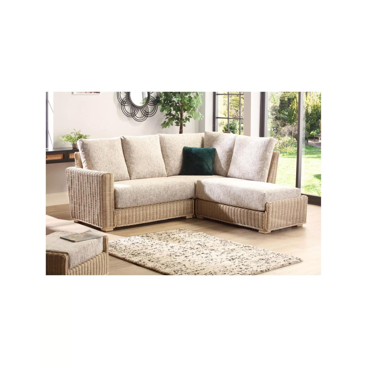 Relax in luxury at home with this Burford sofa, designed with a spacious corner configuration and a chaise on one side. Handmade from natural rattan, the design features Pirelli webbing for optimal frame support and added stability. Dacron wrap prevents worn areas, maintaining the sofa's pristine appearance over time. Foam-filled, thick seat cushions paired with supportive fibre-filled back cushions ensure lasting comfort. The cushions are made in the UK, in Manchester. The cushion inners are also made in the UK, so the quality and comfort are to the highest standard. The sofa complements matching boxy-shaped rattan furniture in the Burford range. Strong and durable, natural rattan is low maintenance and easy to keep clean. Wipe the furniture clean with a dry cloth or a slightly damp cloth and dry it afterwards. Keep the furniture in a dry environment and avoid leaving it under direct sunlight for prolonged periods. The furniture's colour lasts longer if moved around a conservatory regularly to protect it from direct sunlight in the same spot. Sourced in Indonesia, rattan is fast-growing compared to wood alternatives. Every part of the rattan vine is used. Outer rattan cane is used for attractive weaving, and the solid core is steamed to manipulate it into beautiful furniture shapes.