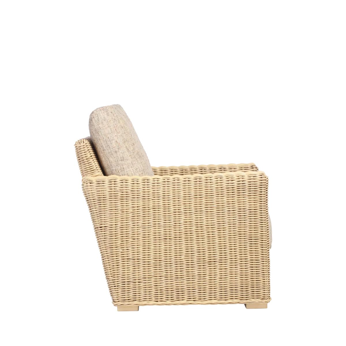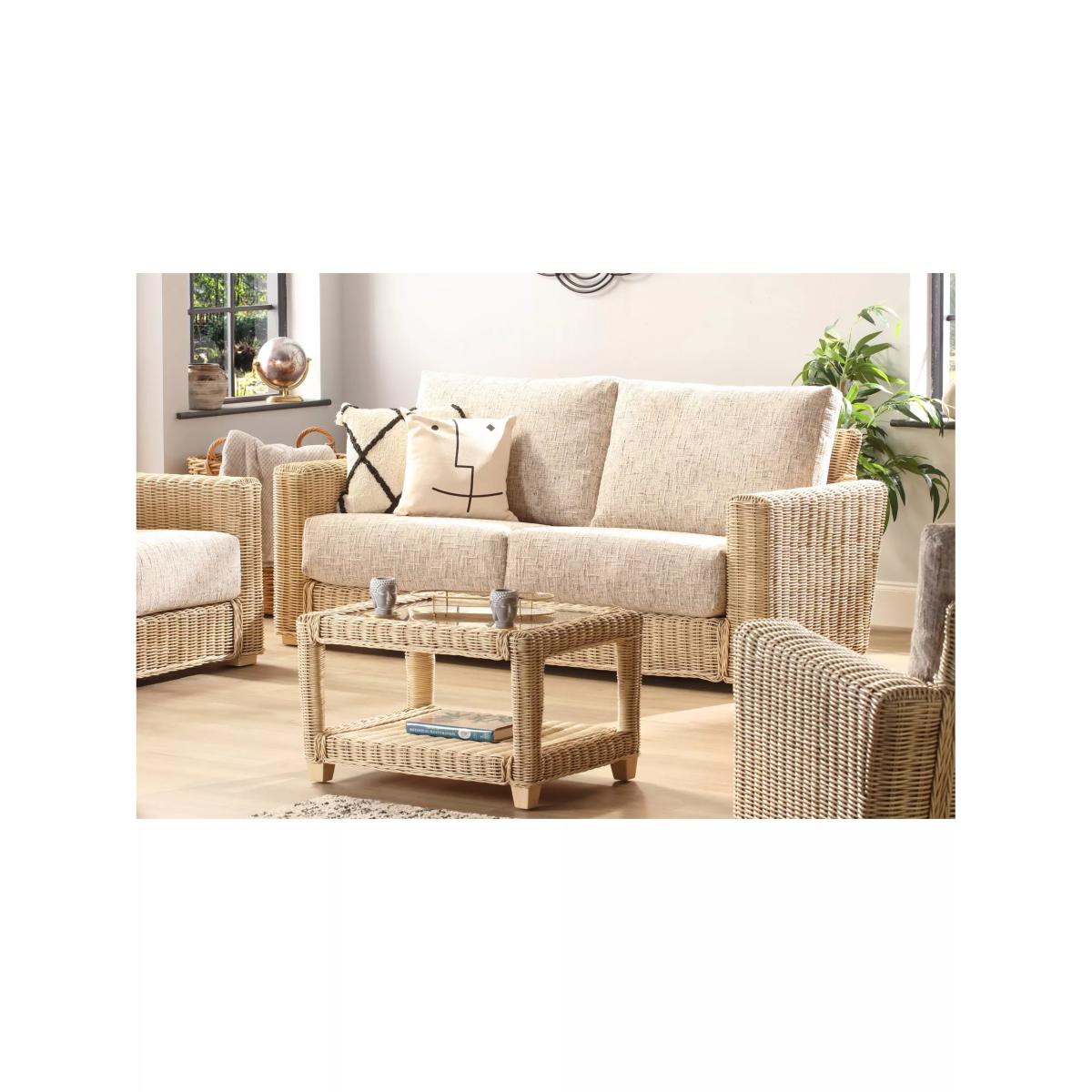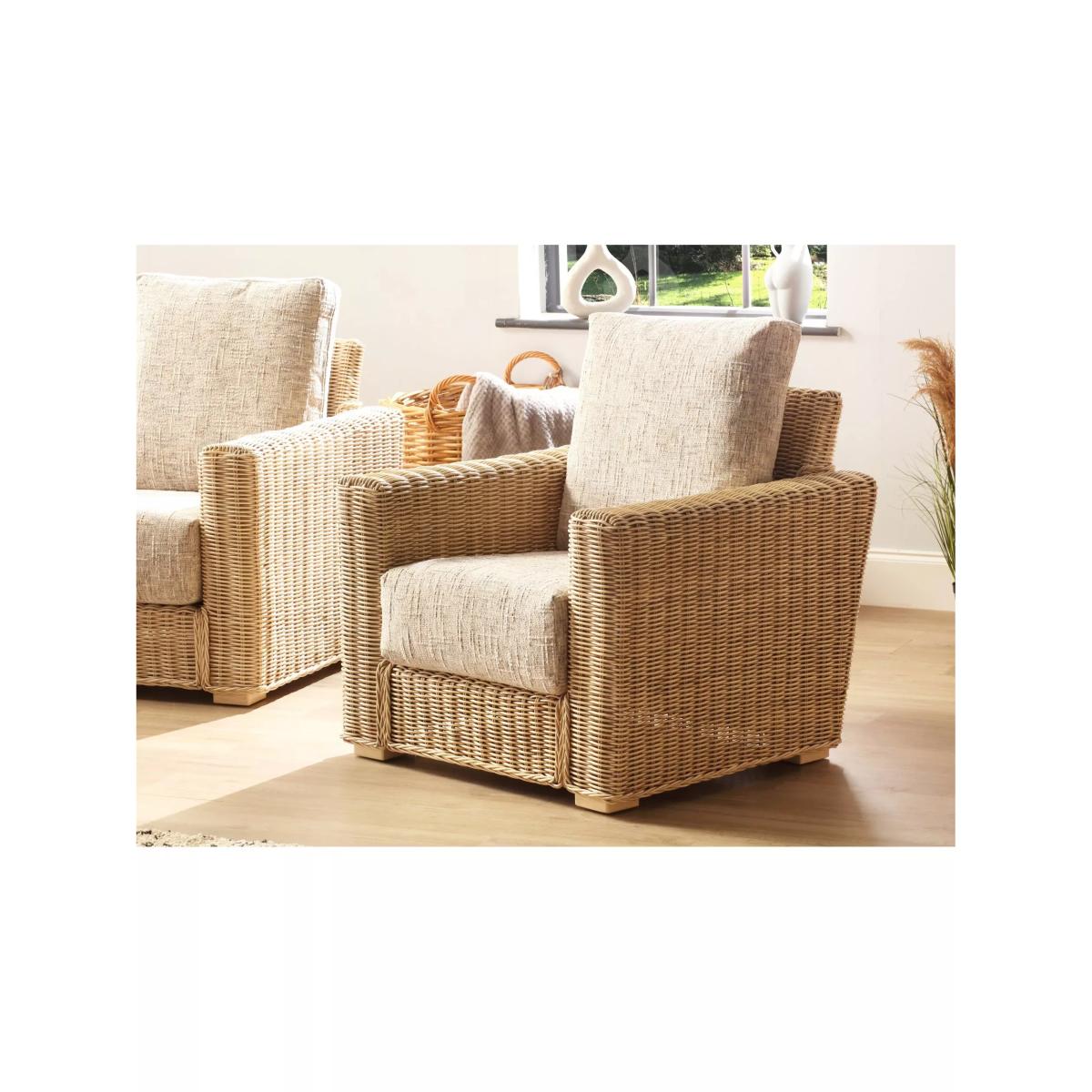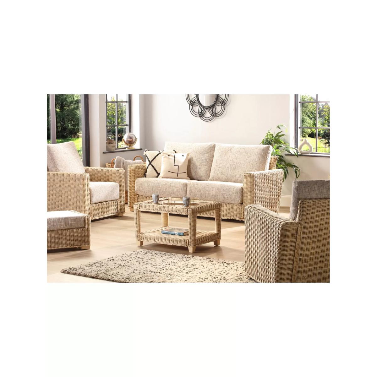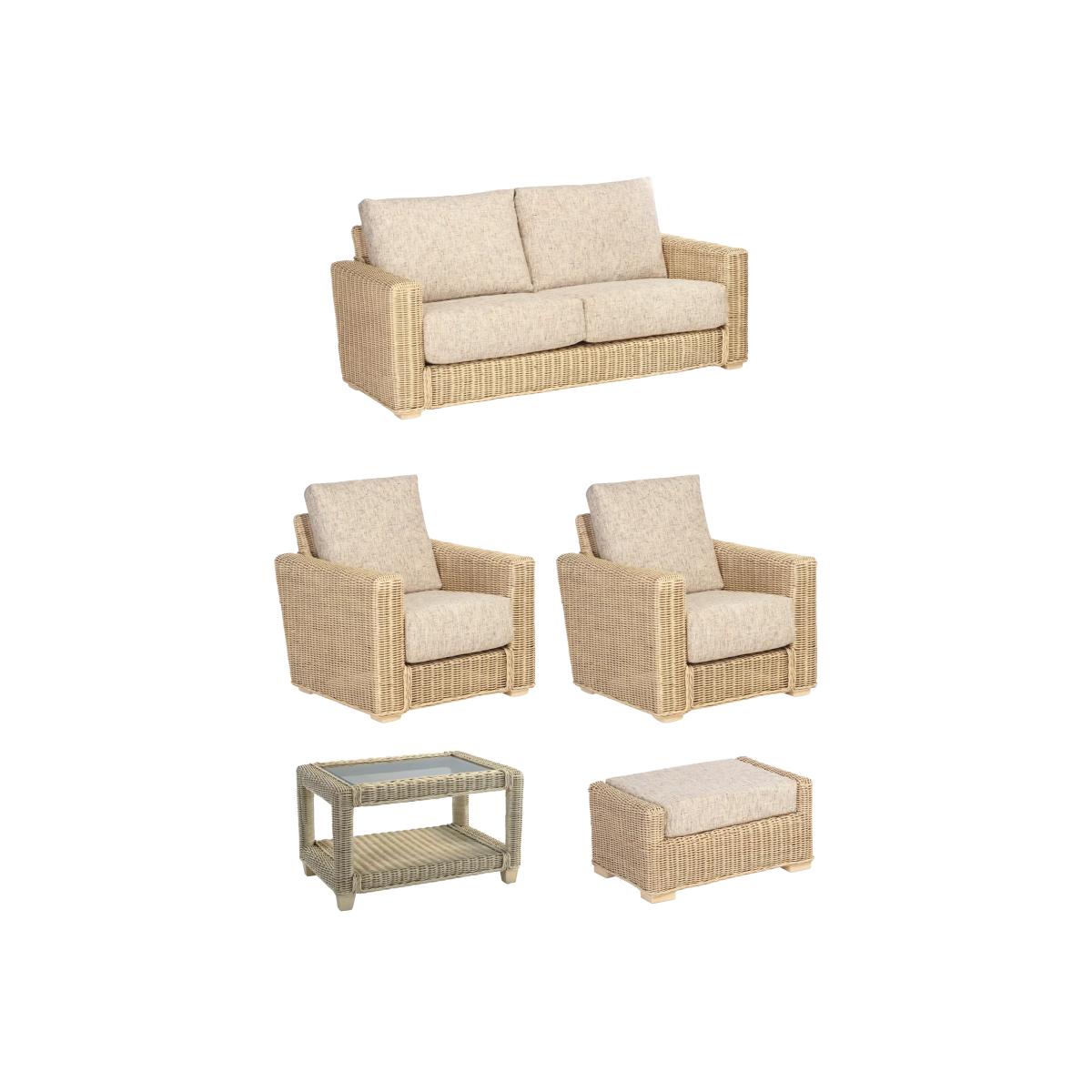 Handmade from natural rattan, the Burford 5-seater lounging set is perfect for your orangery, summerhouse, conservatory or living room. The set includes a sofa, two armchairs, a footstool and a coffee table. Cushions are manufactured in the UK.