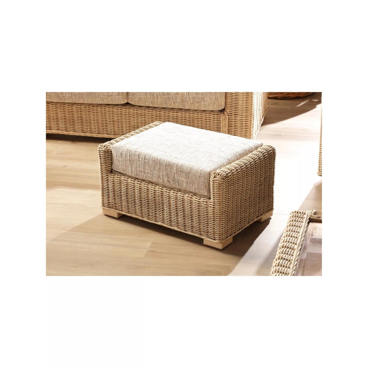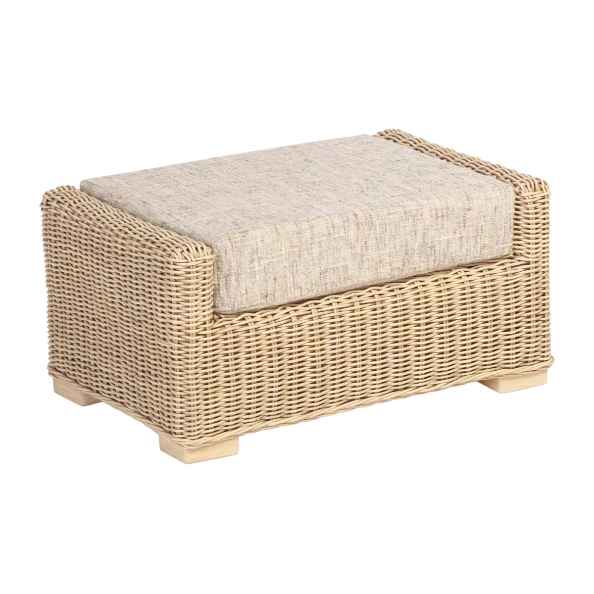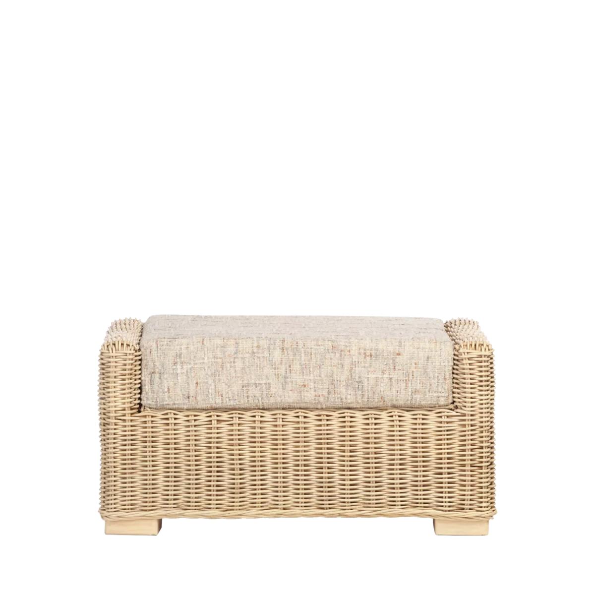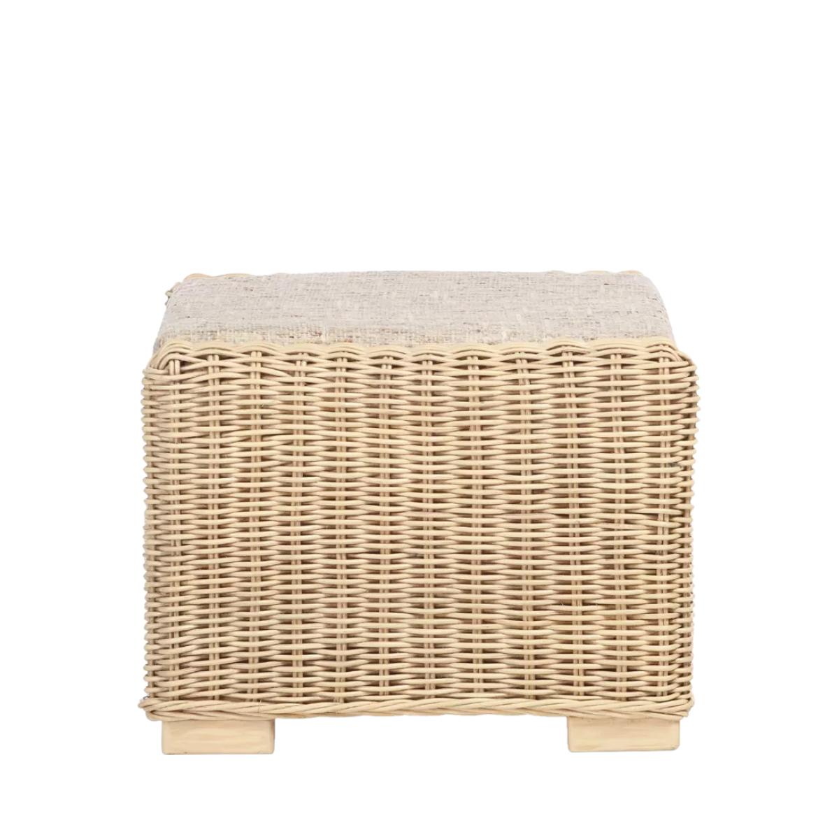 Natural rattan handmade footstool with storage, and cushions manufactured in the UK.