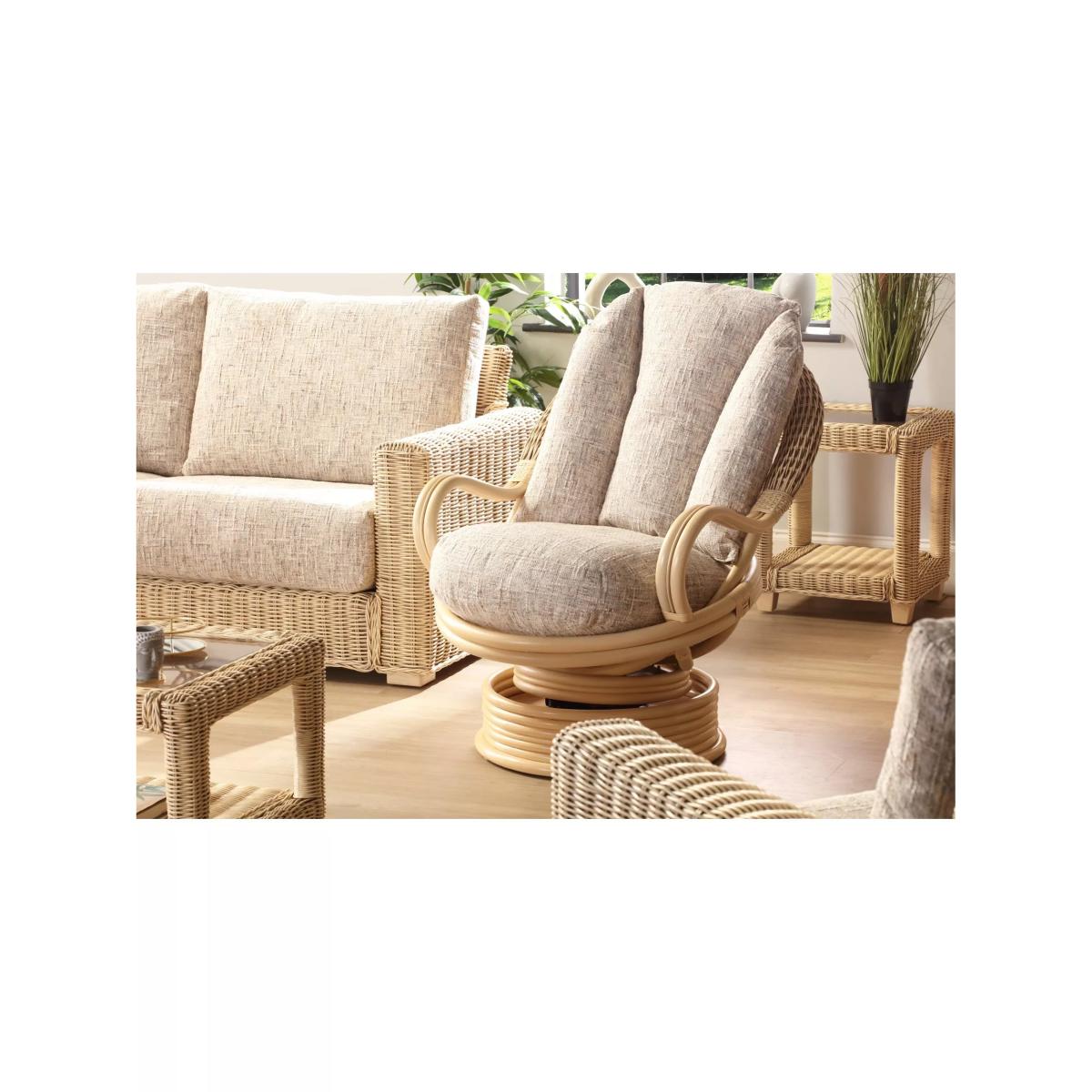 Swivel rocking chair, handmade from natural rattan furniture. The cushions are manufactured in the UK. Perfect for your orangery, summerhouse, conservatory or living room.