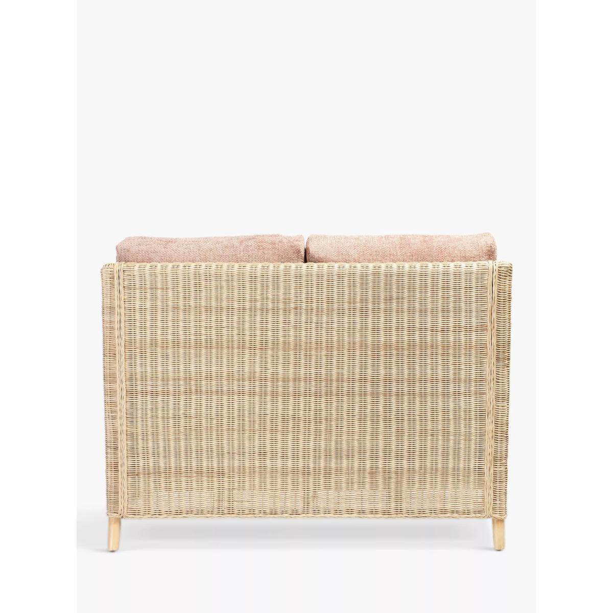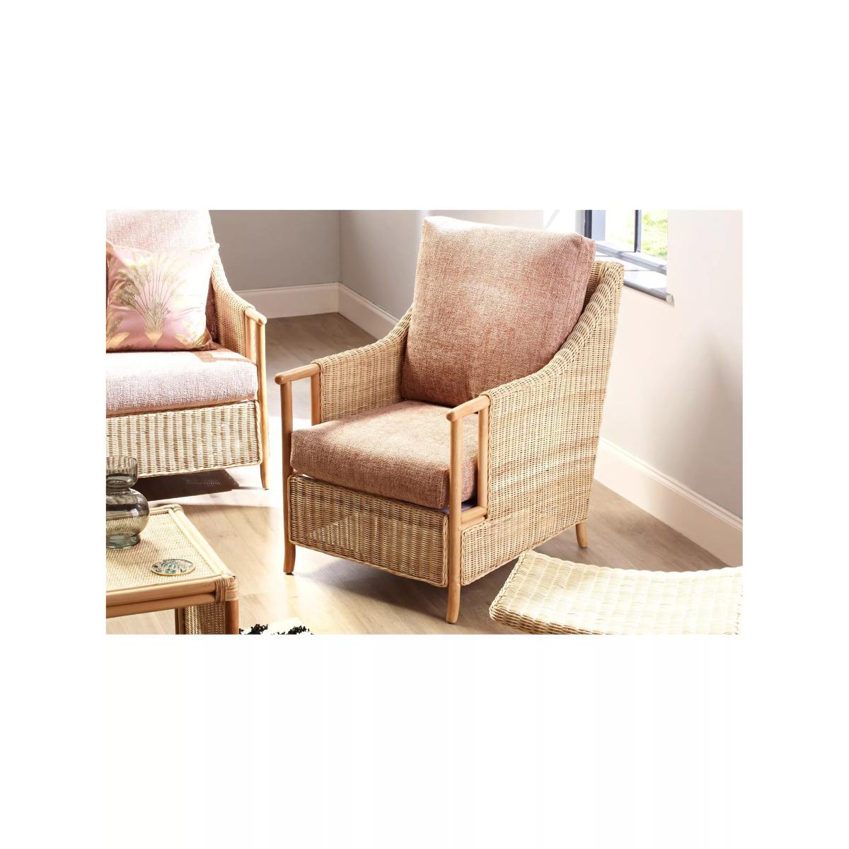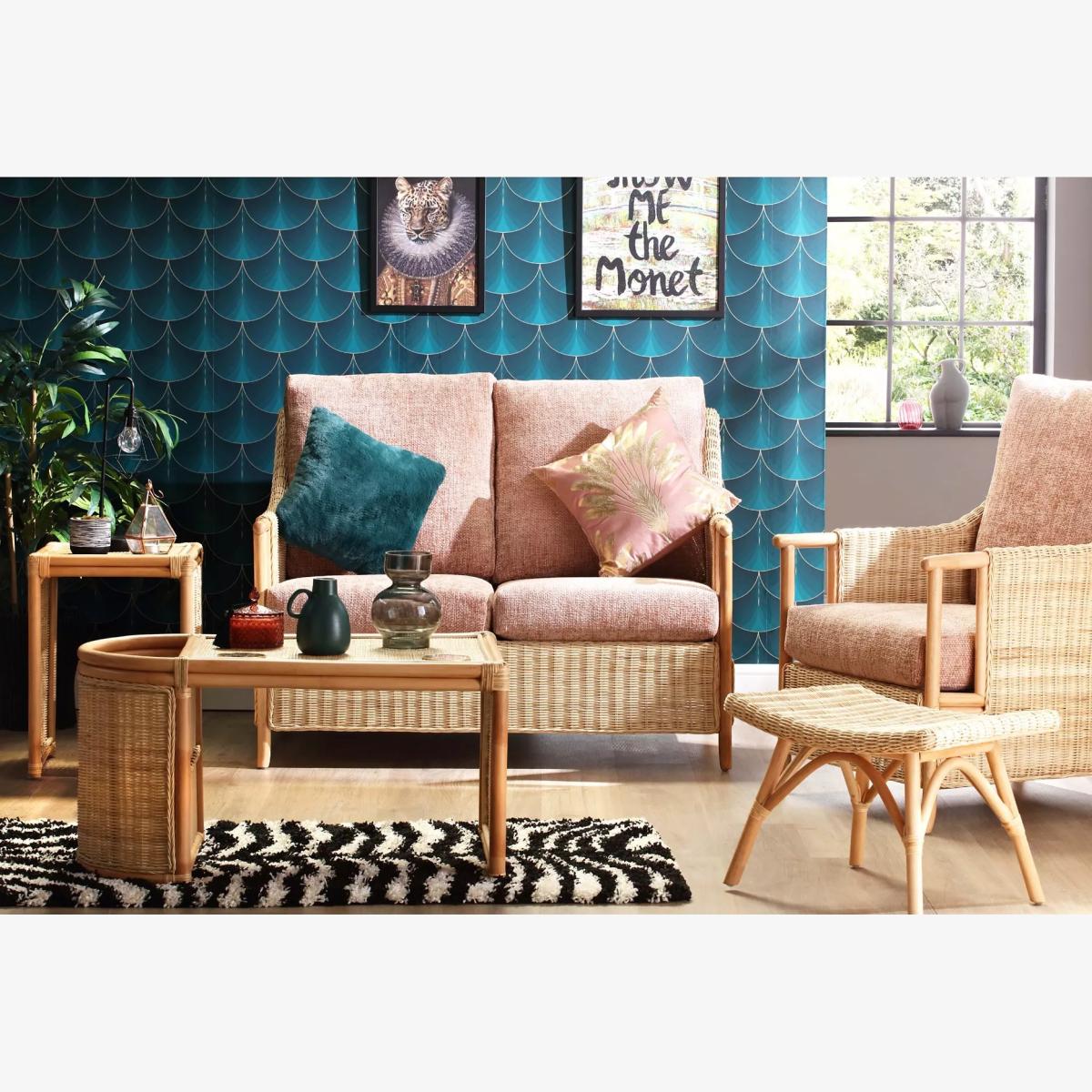 Handmade from natural rattan, the Eden three-seater lounging set from Desser is an attractive design for the living room or conservatory. The set includes a two-seater sofa, an armchair, coffee table, lamp table and footstool. The two-seater sofa and the lounge armchair are made with a beautiful wicker weave, high backs and plump cushions to create a luxurious sit. The square side table or lamp table and the coffee table feature a sturdy double cane pole design with a wicker weave top. The coffee table includes storage space at the side for items such as blankets, magazines and newspapers. The footstool is arched for comfort and made at the perfect height to accompany most chairs, including the Desser Eden range. It's fashioned with a double cane pole frame for strength and durability while also being left in its natural colour, meaning that no two pieces are exactly the same. Strong and durable, natural rattan is low maintenance and easy to keep clean. Wipe the furniture clean with a dry cloth or a slightly damp cloth and dry it afterwards. Keep the furniture in a dry environment and avoid leaving it under direct sunlight for prolonged periods. The furniture’s colour lasts longer if moved around a conservatory regularly to protect it from direct sun in the same spot. Sustainably sourced in Indonesia, rattan is fast-growing compared to wood alternatives and, as a companion crop, its farming encourages the preservation of forests. Every part of the rattan vine is used. Outer rattan cane is used for attractive weaving and the solid core is steamed to manipulate it into beautiful furniture shapes.