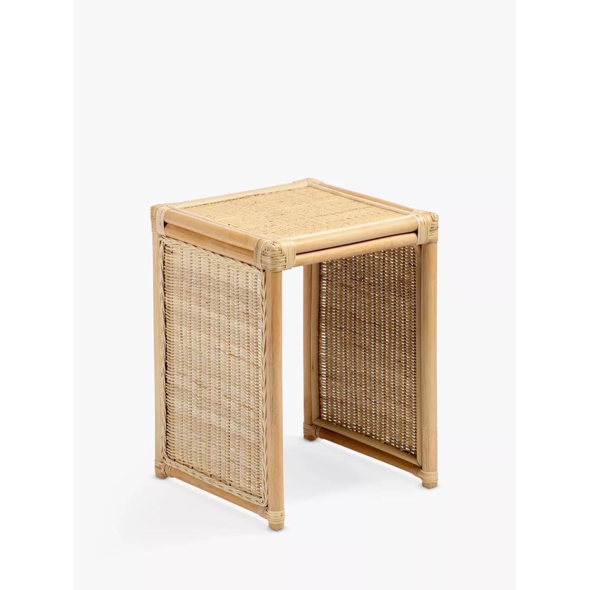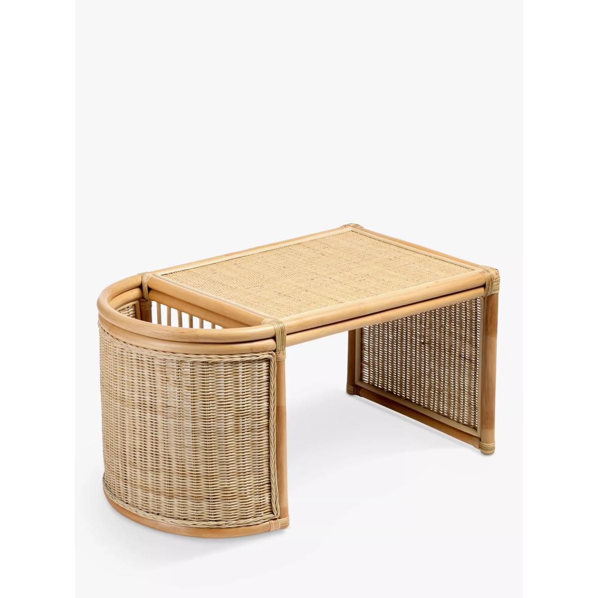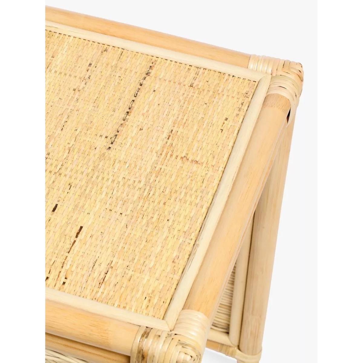 Handmade from natural rattan, the Eden three-seater lounging set from Desser is an attractive design for the living room or conservatory. The set includes a two-seater sofa, an armchair, coffee table, lamp table and footstool. The two-seater sofa and the lounge armchair are made with a beautiful wicker weave, high backs and plump cushions to create a luxurious sit. The square side table or lamp table and the coffee table feature a sturdy double cane pole design with a wicker weave top. The coffee table includes storage space at the side for items such as blankets, magazines and newspapers. The footstool is arched for comfort and made at the perfect height to accompany most chairs, including the Desser Eden range. It's fashioned with a double cane pole frame for strength and durability while also being left in its natural colour, meaning that no two pieces are exactly the same. Strong and durable, natural rattan is low maintenance and easy to keep clean. Wipe the furniture clean with a dry cloth or a slightly damp cloth and dry it afterwards. Keep the furniture in a dry environment and avoid leaving it under direct sunlight for prolonged periods. The furniture’s colour lasts longer if moved around a conservatory regularly to protect it from direct sun in the same spot. Sustainably sourced in Indonesia, rattan is fast-growing compared to wood alternatives and, as a companion crop, its farming encourages the preservation of forests. Every part of the rattan vine is used. Outer rattan cane is used for attractive weaving and the solid core is steamed to manipulate it into beautiful furniture shapes.