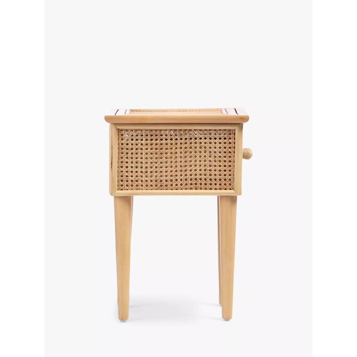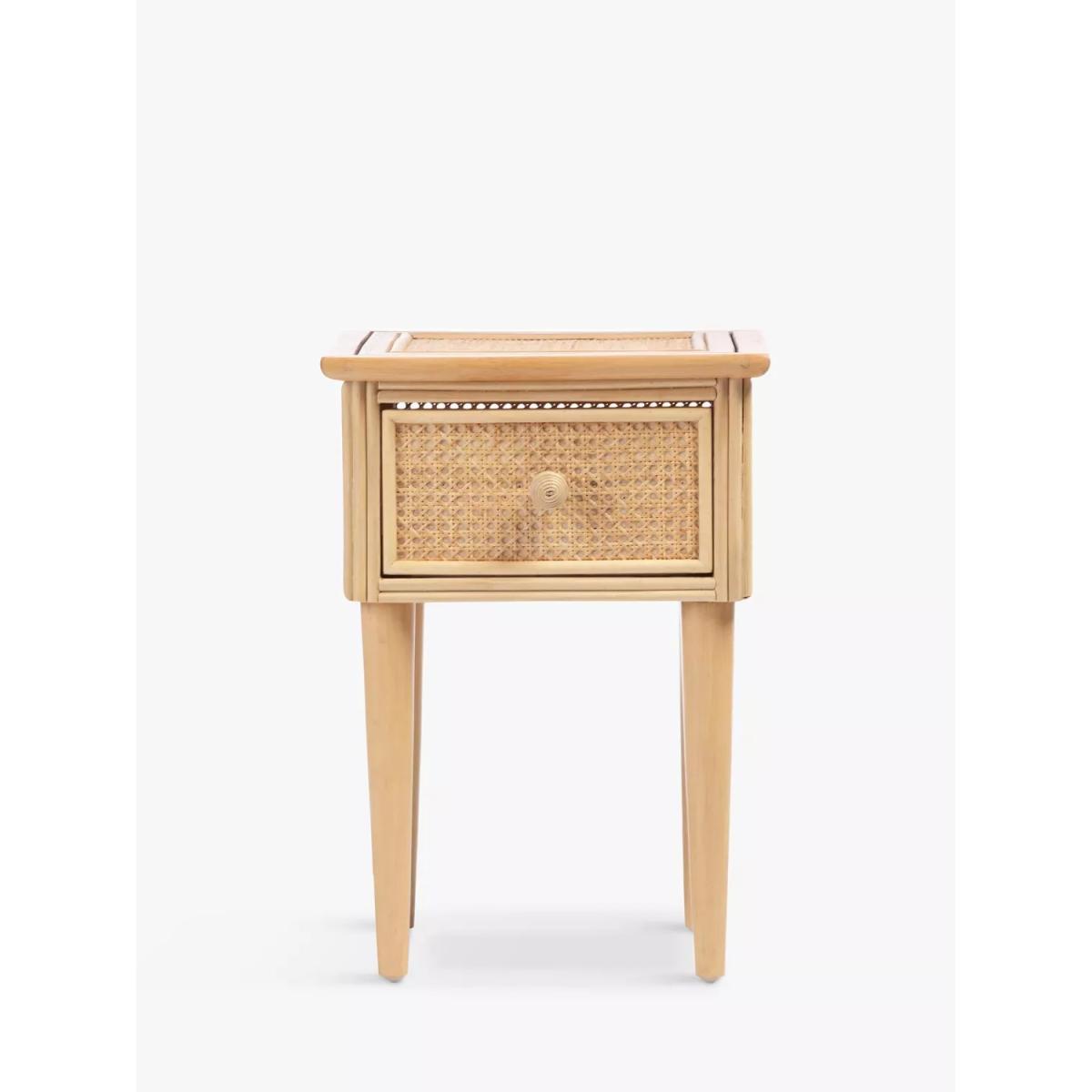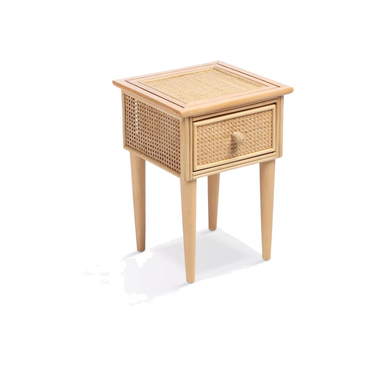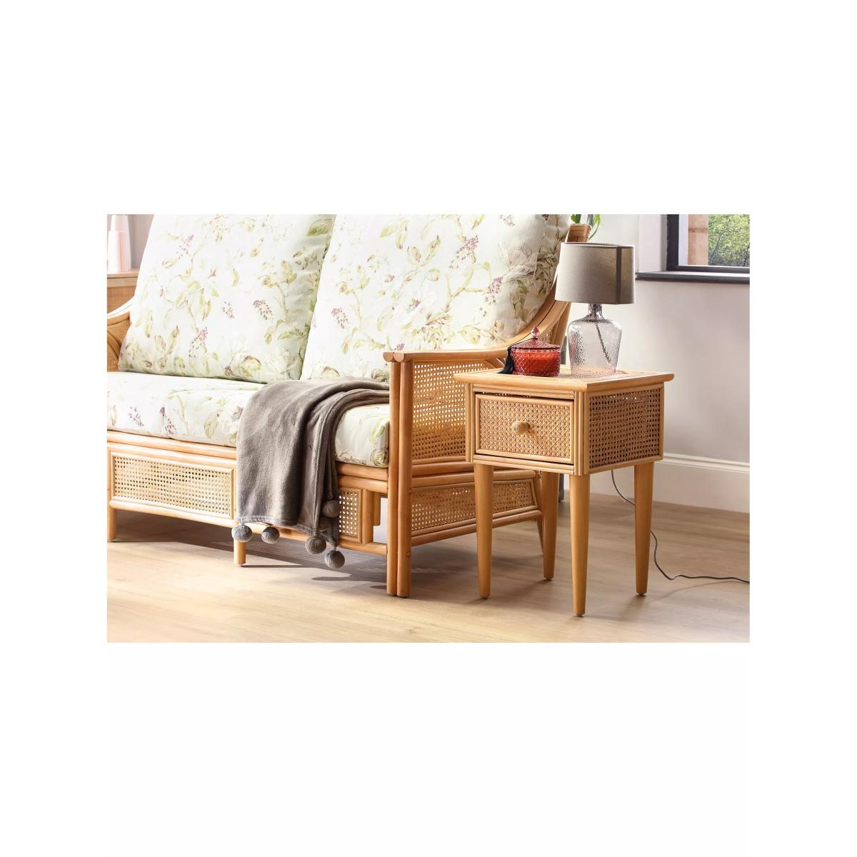 Handmade from natural rattan, the Chester side table or lamp table from Desser features open cane webbing panels and top and sturdy pole legs, creating an attractive piece for the living room or conservatory. This square table has a handy drawer and complements matching rattan furniture in the Chester range. Strong and durable, natural rattan is low maintenance and easy to keep clean. Wipe the furniture clean with a dry cloth or a slightly damp cloth and dry it afterwards. Keep the furniture in a dry environment and avoid leaving it under direct sunlight for prolonged periods. The furniture’s colour lasts longer if moved around a conservatory regularly to protect it from direct sun in the same spot. Sustainably sourced in Indonesia, rattan is fast-growing compared to wood alternatives and, as a companion crop, its farming encourages the preservation of forests. Every part of the rattan vine is used. Outer rattan cane is used for attractive weaving and the solid core is steamed to manipulate it into beautiful furniture shapes.