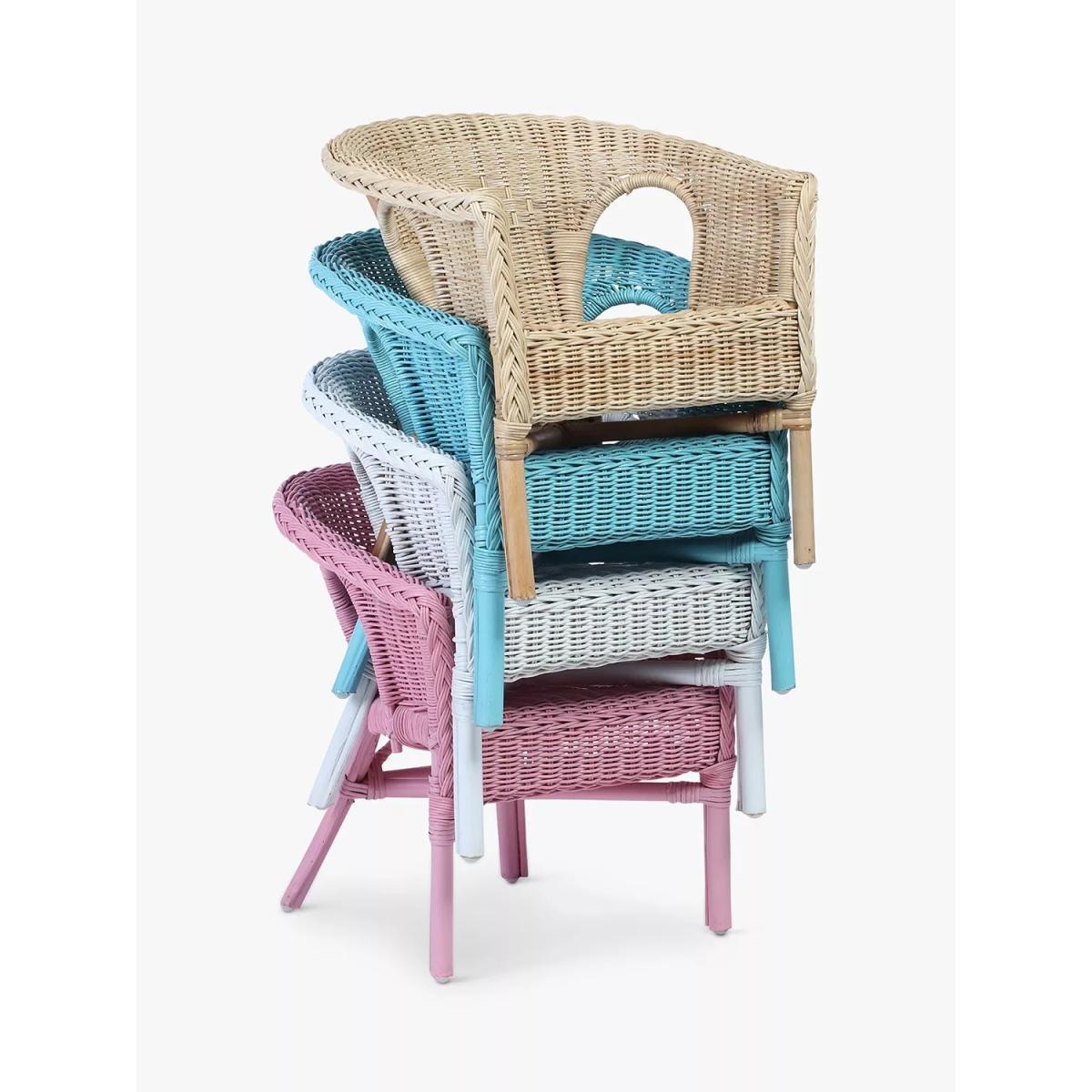 Handmade from natural rattan, the Loom chair from Desser is fashioned with an attractive wicker weave design and double cane pole legs for sturdiness. The chair is on trend in bedrooms or even as an accessory in other living areas. A great space saver, it's lightweight and designed to be stackable so you can easily store away if bought in multiples. This size is ideal for toddlers and infants, for a bedroom, play area or classroom setting. Strong and durable, natural rattan is low maintenance and easy to keep clean. Wipe the furniture clean with a dry cloth or a slightly damp cloth and dry it afterwards. Keep the furniture in a dry environment and avoid leaving it under direct sunlight for prolonged periods. The furniture's colour lasts longer if moved around a conservatory regularly to protect it from direct sun in the same spot. Sustainably sourced in Indonesia, rattan is fast-growing compared to wood alternatives and, as a companion crop, its farming encourages the preservation of forests. Every part of the rattan vine is used. Outer rattan cane is used for attractive weaving and the solid core is steamed to manipulate it into beautiful furniture shapes.