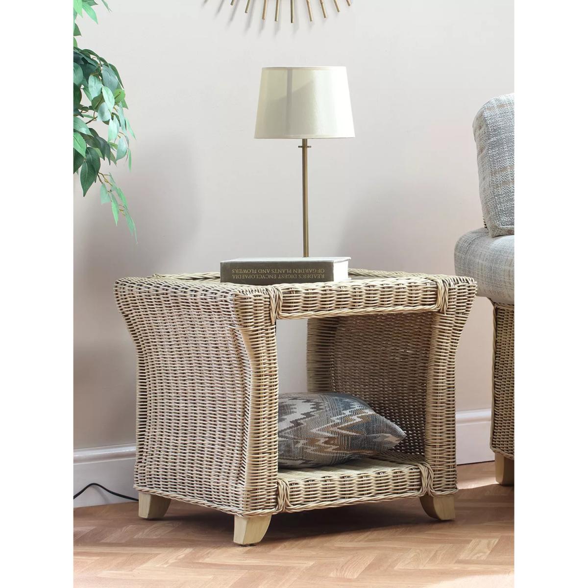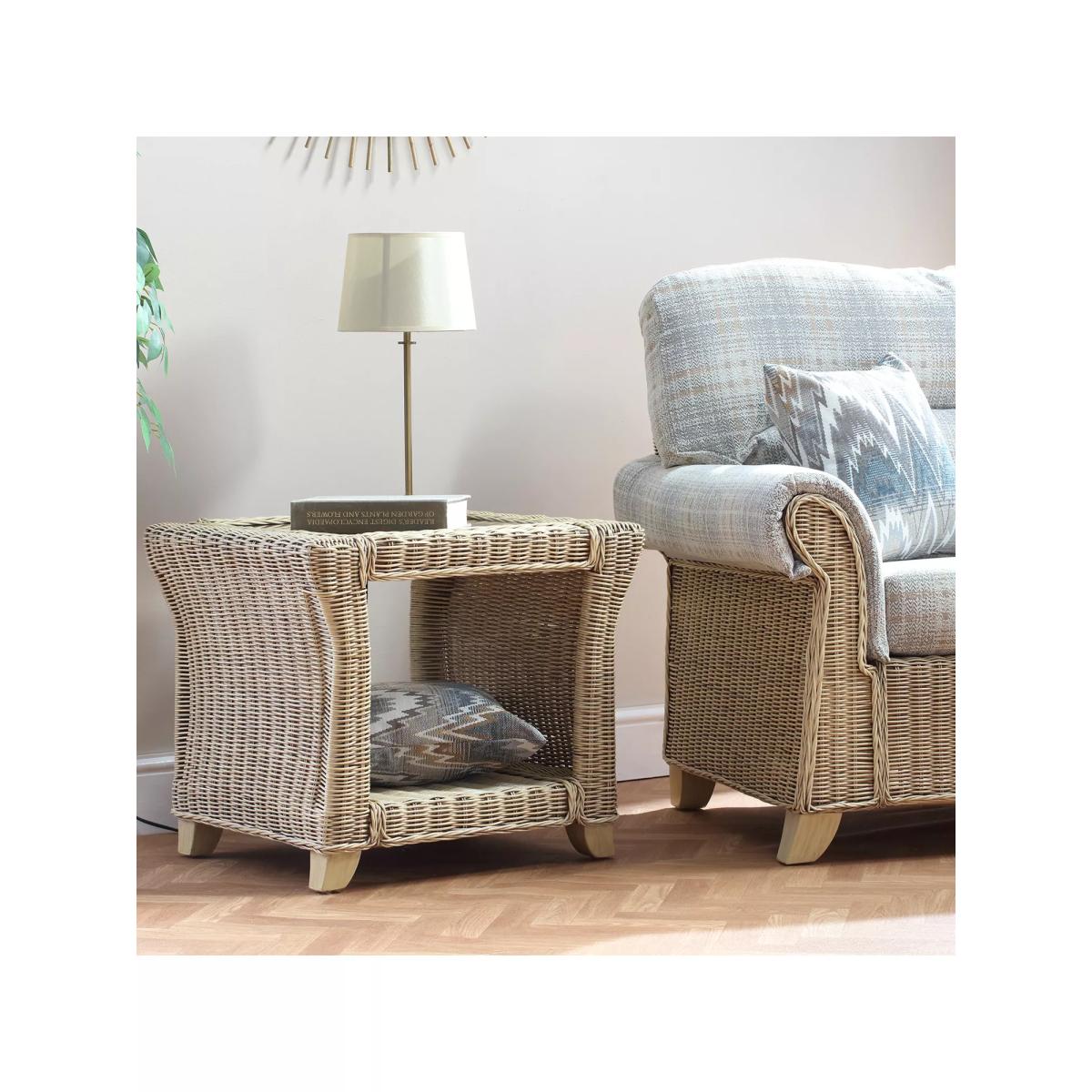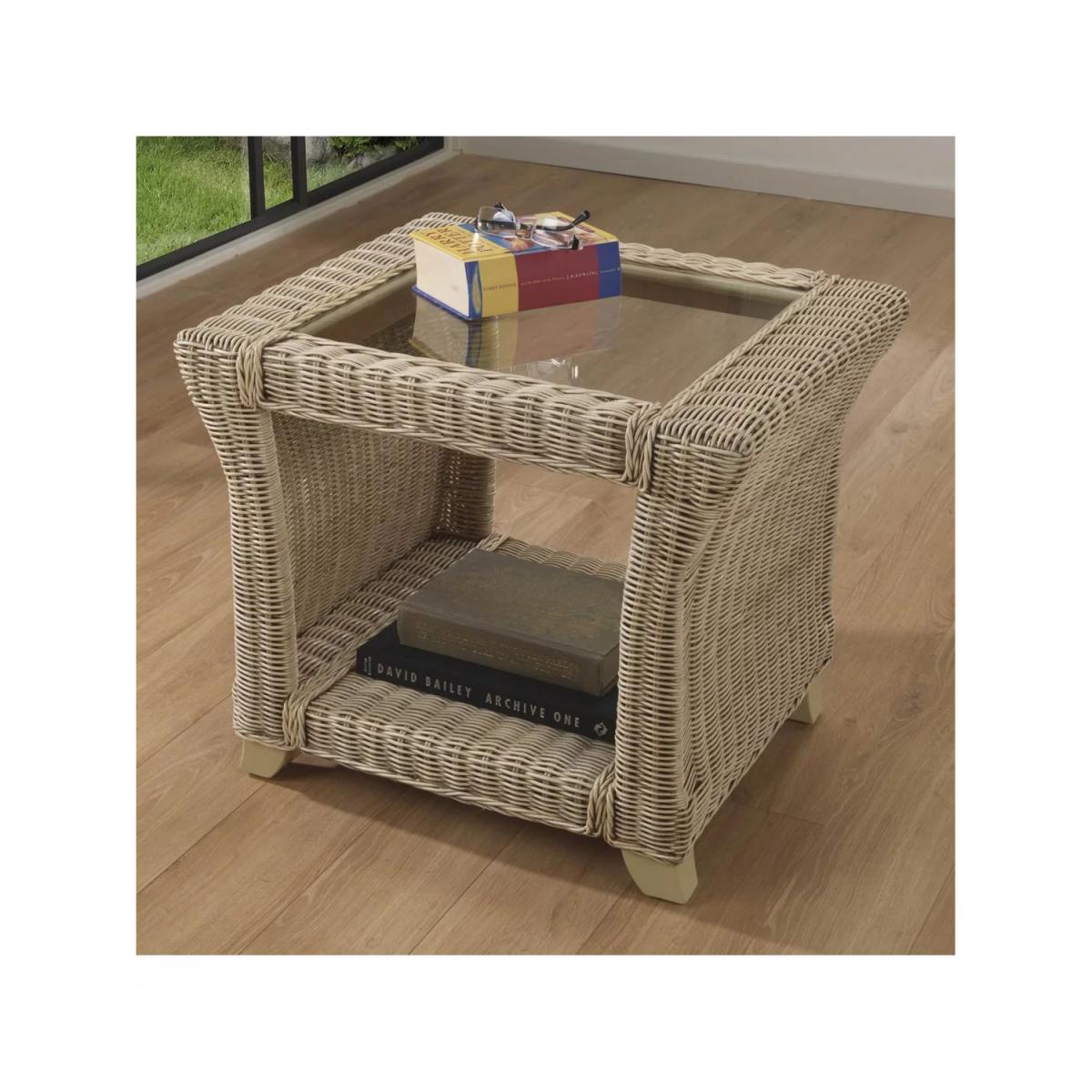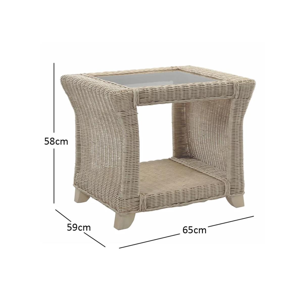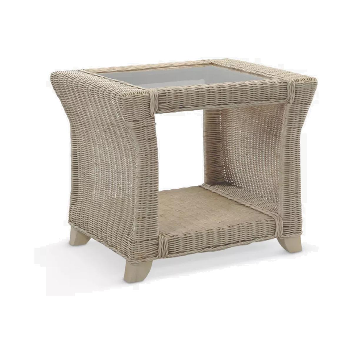 Handmade from natural rattan, the Clifton side table or lamp table from Desser features intricate woven wicker, creating an attractive and practical piece for the living room or conservatory. The table has sturdy legs, a 5mm toughened glass top and a storage shelf to keep magazines, newspapers and books tucked away. The table complements matching rattan furniture in the Clifton range. Strong and durable, natural rattan is low maintenance and easy to keep clean. Wipe the furniture clean with a dry cloth or a slightly damp cloth and dry it afterwards. Keep the furniture in a dry environment and avoid leaving it under direct sunlight for prolonged periods. The furniture’s colour lasts longer if moved around a conservatory regularly to protect it from direct sun in the same spot. Sustainably sourced in Indonesia, rattan is fast-growing compared to wood alternatives and, as a companion crop, its farming encourages the preservation of forests. Every part of the rattan vine is used. Outer rattan cane is used for attractive weaving and the solid core is steamed to manipulate it into beautiful furniture shapes.
