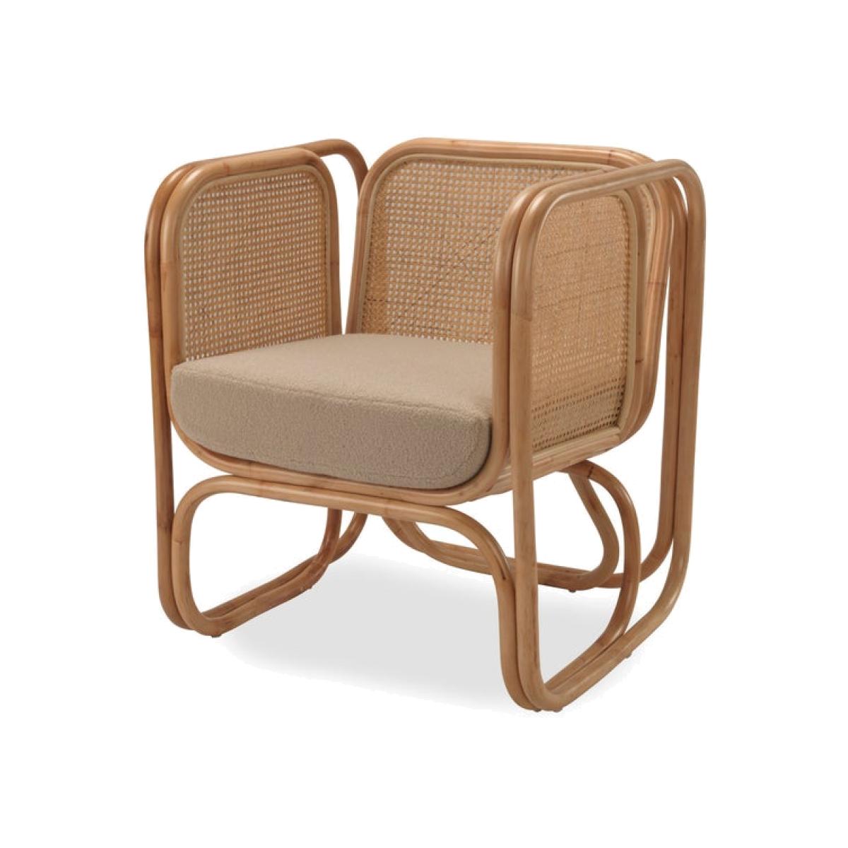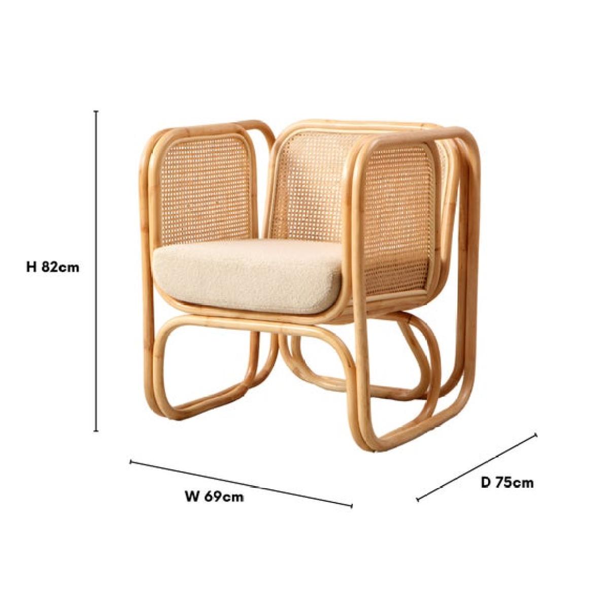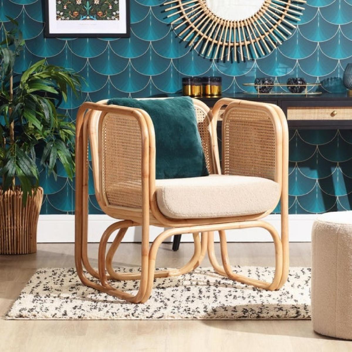 I love this rattan chair for its relaxed, timeless appeal and versatility. It’s ideal in both boho-inspired and Scandi interiors, adding warmth and texture without overwhelming the space. The boucle cushion provides a cosy touch that’s perfect for lounging, while the rattan frame lends a natural vibe that’s easy to accessorise with throws and cushions in various patterns or colours. Practically, it works well as an accent piece in living rooms, reading nooks, or even bedrooms. Styling tips include pairing it with low side tables or placing it near a window for a sunlit corner. Its flexibility means it can serve as a statement piece or blend seamlessly into a layered, layered decorating scheme.