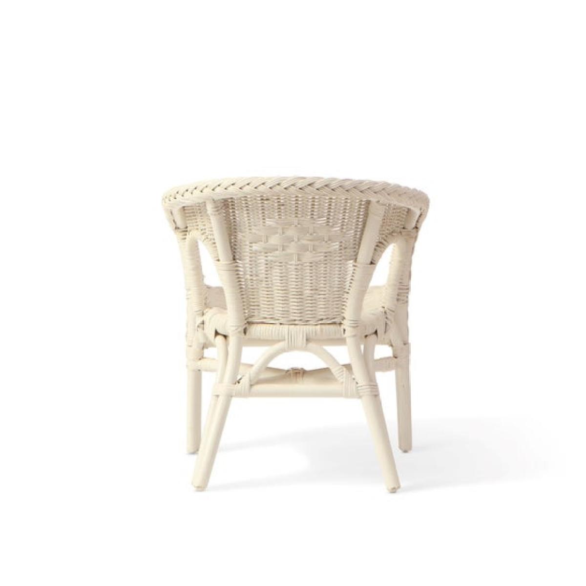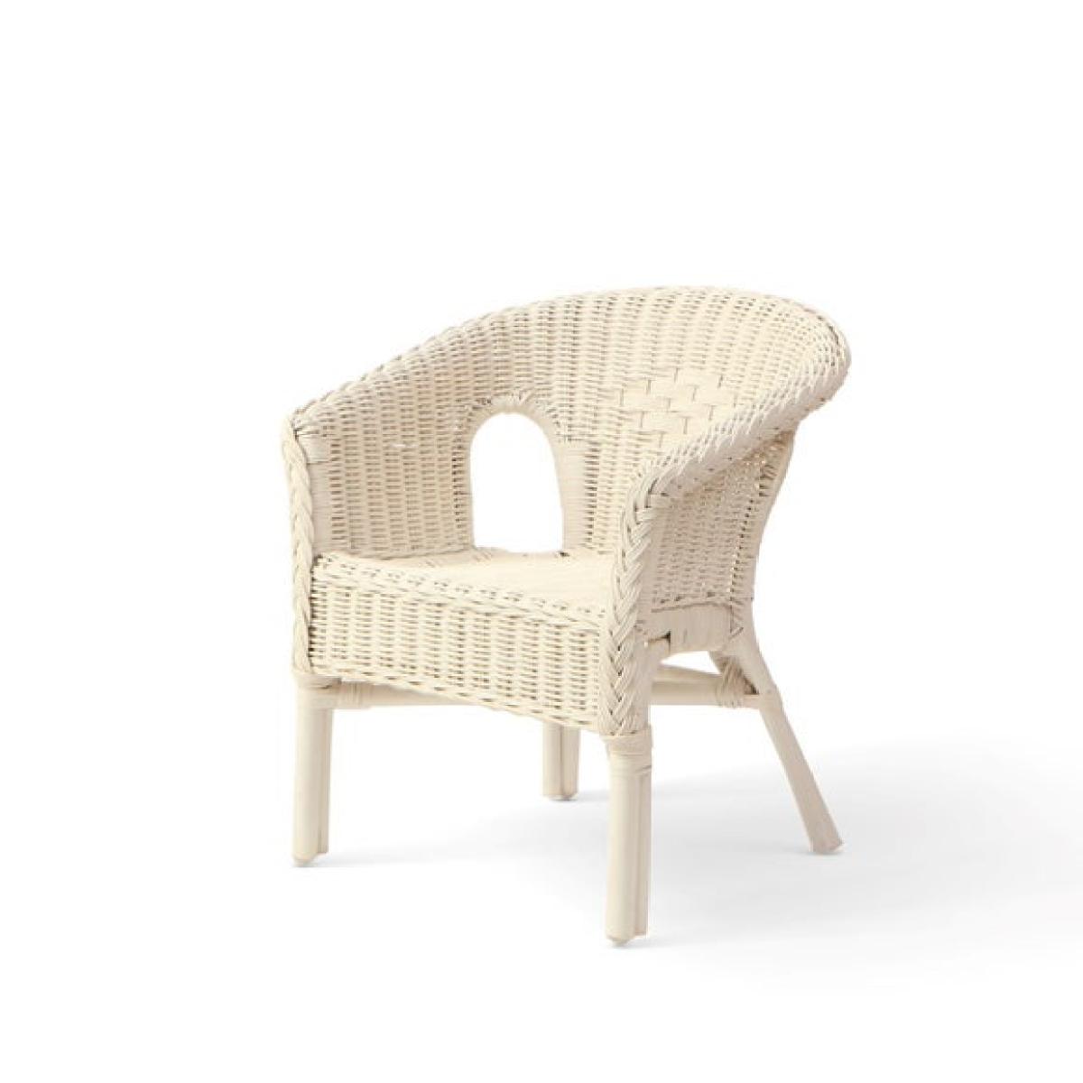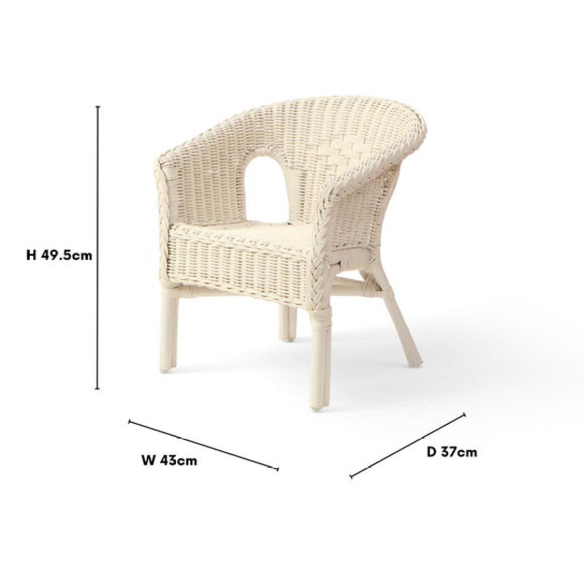 * Small wicker chair * Stackable * Hand made in the UK Perfectly sized for toddlers and infants, the Desser kids loom chair is lightweight, stackable, and hand-woven from natural rattan. Available in white or natural finishes, it’s ideal for bedrooms, play dens, or bathrooms.
