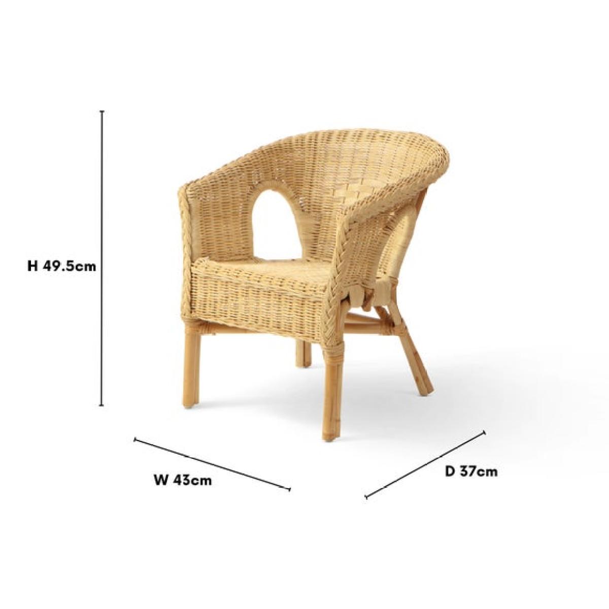 * Small wicker chair * Stackable * Hand made in the UK Perfectly sized for toddlers and infants, the Desser kids loom chair is lightweight, stackable, and hand-woven from natural rattan. Available in white or natural finishes, it’s ideal for bedrooms, play dens, or bathrooms.
