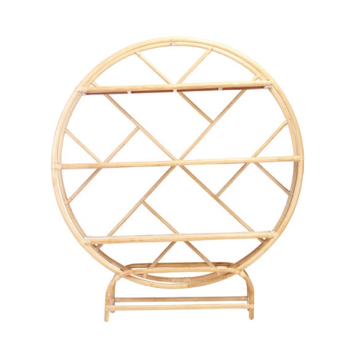 * Hand woven bookcase * 3 large shelves * Sturdy frame * Crafted in the UK Hand-woven from natural rattan, this large etagere bookcase brings a light, airy feel to your interiors while offering practical storage across three spacious shelves. Its sturdy four-footed base ensures stability, and the part-assembled design means it’s easy to set up. Whether styled with books, plants or decorative pieces, it’s a beautiful way to add texture and warmth to your space.