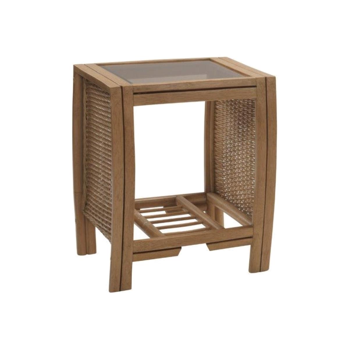 The Desser Manila lamp table is made from natural rattan with a light oak wash finish. With a supportive base and a 5mm toughened glass coffee table, it is able to hold your usual daily household items. Additionally, it has been designed to match the rest of the range with its wicker weave sides, whilst also boasting a lower shelf to store your magazines, books and newspapers away. Ideal for use as a side table to accompany the rest of the range. Easy to clean toughened glass is used making the table visually stunning but also giving household items the support that they need. *Light oak wash finish *Hand-crafted hand-weaved natural cane frame through sustainable farming *1 year warranty Dimensions:. *Height: 57cm *Width: 47cm *Depth: 39cm All screens vary in colour reproduction and whilst every effort has been made to display the colour as accurately as possible it is for guidance only..