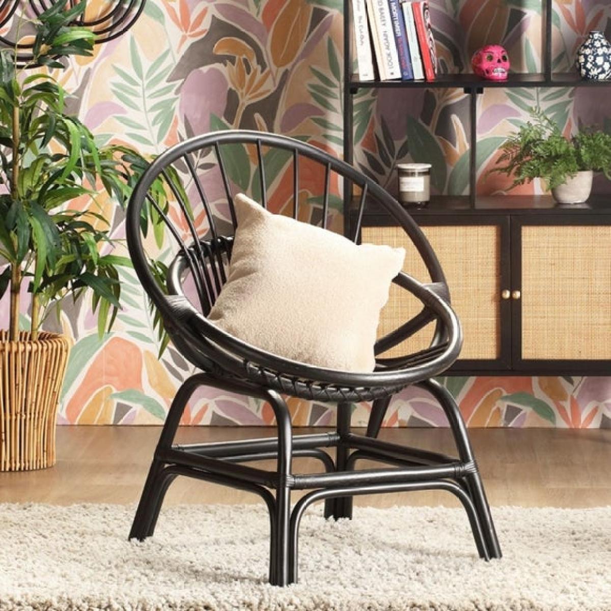 I love this moon rattan chair for its sleek, contemporary design with a touch of natural warmth. It’s versatile enough to enhance both modern and boho interiors, adding an inviting focal point in living rooms, bedrooms, or reading nooks. To style it effectively, consider pairing it with textured cushions or throws for extra comfort, or position it alongside other natural materials like wood or wicker to create a cohesive look. Its lightweight frame also makes it easy to shift around, making it a practical yet stylish addition to any space.