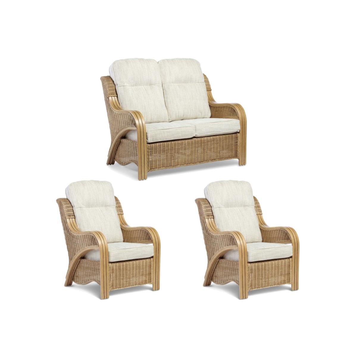 The Opera is a beautifully stylish collection which evokes a real sense of modern floral elegance, all brought seamlessly together with a hand woven touch. This natural wash finish suite is perfect for the conservatory, with its high back, curvaceous and sweeping triple laminated rattan arms; adding plenty of extra comfort to what should be the most used room in the home. The Opera suite is finished with removable split back cushions and Dacron wrapped base cushions. Each piece of furniture is completely unique, and is made with the utmost craft, care and attention. The Opera is no different. Perfect for lazing on those summers days, with the conservatory doors wide open, either the sofa piece itself or the whole set is just the ticket to creating a truly welcoming, comforting and homely conservatory. This rattan set, like all other Desser ranges, is hard-wearing and durable. This then means that you will be able to enjoy the sheer splendour, luxury and satisfaction of the Sofia for many years to come. Create a look of opulence and extravagance which your conservatory deserves all year round. An incredibly versatile material, rattan is ideal for all different indoor settings, as well as being perfect for being used outside during the summer months. Dimensions: 2 Seater H 105 x W 126 x D 96cm. Arm chair (2) H 105 x W 73 x D 96cm Please note the swivel chair is not included.