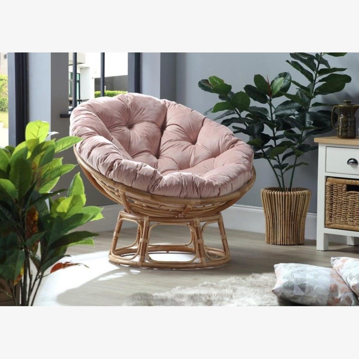 The Papasan chair is the ultimate chill out chair or reading nook. Made from natural rattan material, the seat can be moved around the frame to find your perfect position with the thick and soft UK made comfortable cushion providing the a luxurious sit. Movable to different positions. Hand made from Natural Rattan Sustainably farmed. For Indoor use (Can be used outdoor only in Dry conditions)  1 Year Manufacturer's Guarantee. Fully assembled.  Dimensions: 97cm (H) x 104cm (W) x 85cm (D)