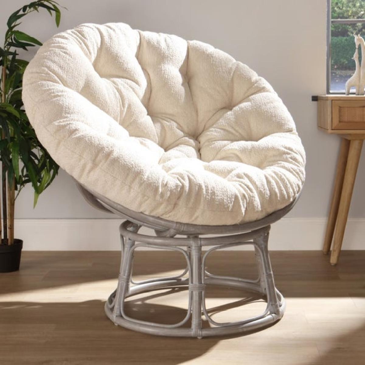 I love this papasan rattan chair for its cosy, inviting shape and relaxed vibe. It works particularly well in boho, coastal, or Scandinavian interiors, where natural materials and neutral tones are key. The plush cushion adds comfort, making it ideal for reading nooks or lounging areas. To style it effectively, consider pairing with textured throws or cushions to enhance its cosy appeal, and position it near a side table and a warm lamp for practical comfort. Its rattan frame not only brings a touch of natural warmth but also suits both modern and rustic settings, making it a versatile addition for creating a laid-back, inviting corner in any home.