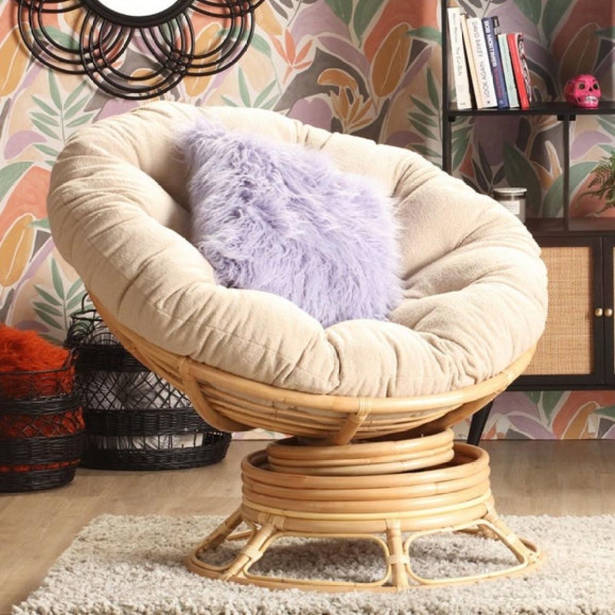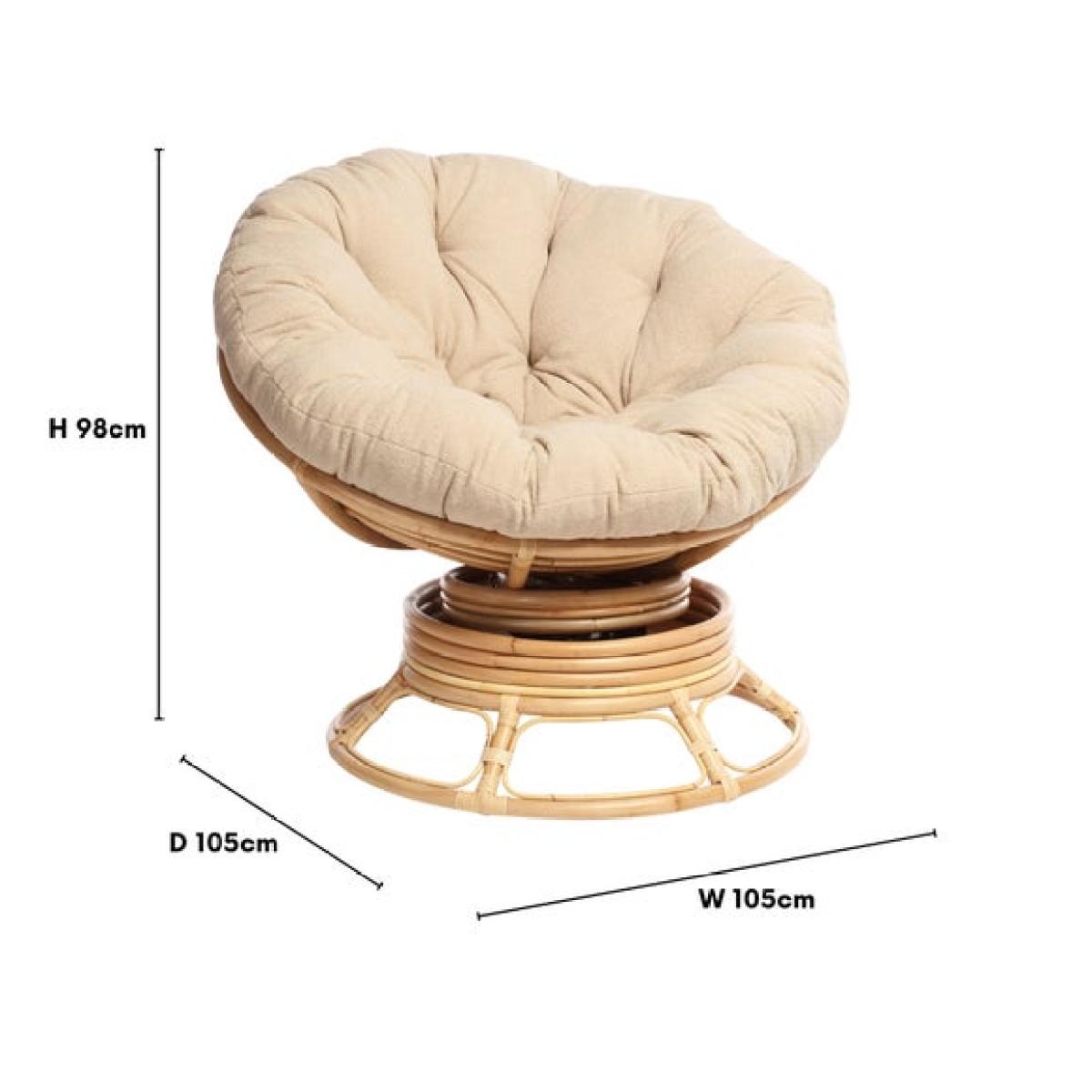 * Natural woven chair * Hand-crafted in the UK * Plush cushion * 360° swivel base Sink into luxury with the Papasan rocking chair, crafted from natural rattan and paired with a plush boucle cushion in Latte. Offering a full 360° swivel and gentle rocking motion, it’s the ultimate relaxation chair. Cushions are UK-made and dry clean only, while the hand-woven frame is sustainably sourced.
