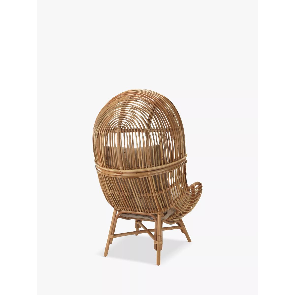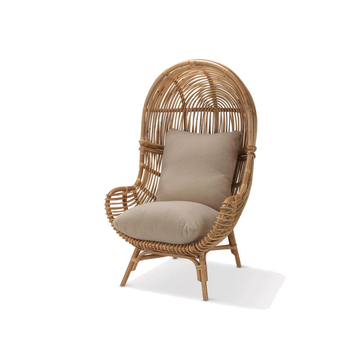 Handmade from natural rattan, the Loft chair from Desser is an attractive design for bedrooms, living areas, garden rooms and summerhouses. Arching cane creates both a comfortable and visual piece of furniture. Hand-sewn in the UK with care and attention, the cushions are made from boucle fabric, offering a cosy texture. Strong and durable, natural rattan is low maintenance and easy to keep clean. Wipe the furniture clean with a dry cloth or a slightly damp cloth and dry it afterwards. Keep the furniture in a dry environment and avoid leaving it under direct sunlight for prolonged periods. The furniture's colour lasts longer if moved around a conservatory regularly to protect it from direct sun in the same spot. Sustainably sourced in Indonesia, rattan is fast-growing compared to wood alternatives and, as a companion crop, its farming encourages the preservation of forests. Every part of the rattan vine is used. Outer rattan cane is used for attractive weaving and the solid core is steamed to manipulate it into beautiful furniture shapes. Assembly is easy with the product arriving in two pieces. The top and bottom just need to be simply screwed in together.