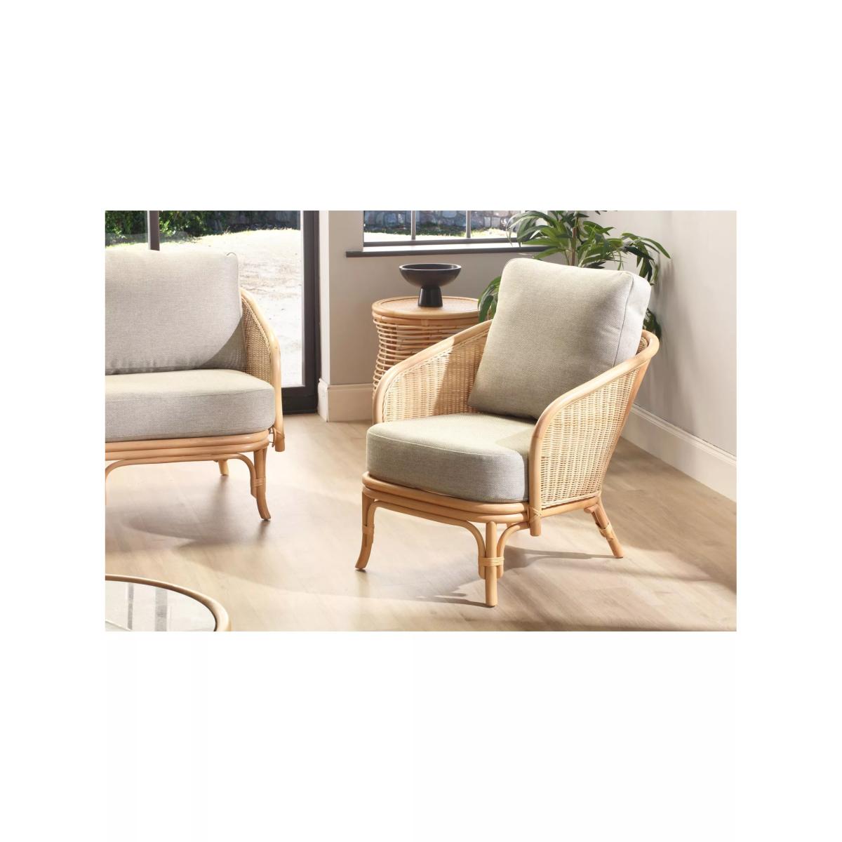I love this set for its relaxed yet refined vibe, especially with the green hue adding a fresh, lively touch. The rattan material brings a natural, tactile warmth that works brilliantly in both coastal and bohemian interiors, but it can also introduce a laid-back elegance to more contemporary spaces. For styling, consider pairing it with neutral or pastel cushions to enhance comfort, and layer with textures like linen or jute rugs for a cohesive look. It’s perfect for outdoor patios or conservatories, but can also serve as a charming indoor seating area, provided it’s in a well-ventilated space. Keep accessories minimal to highlight the natural rattan, and add some houseplants nearby to complement the greenery for a truly inviting setup.