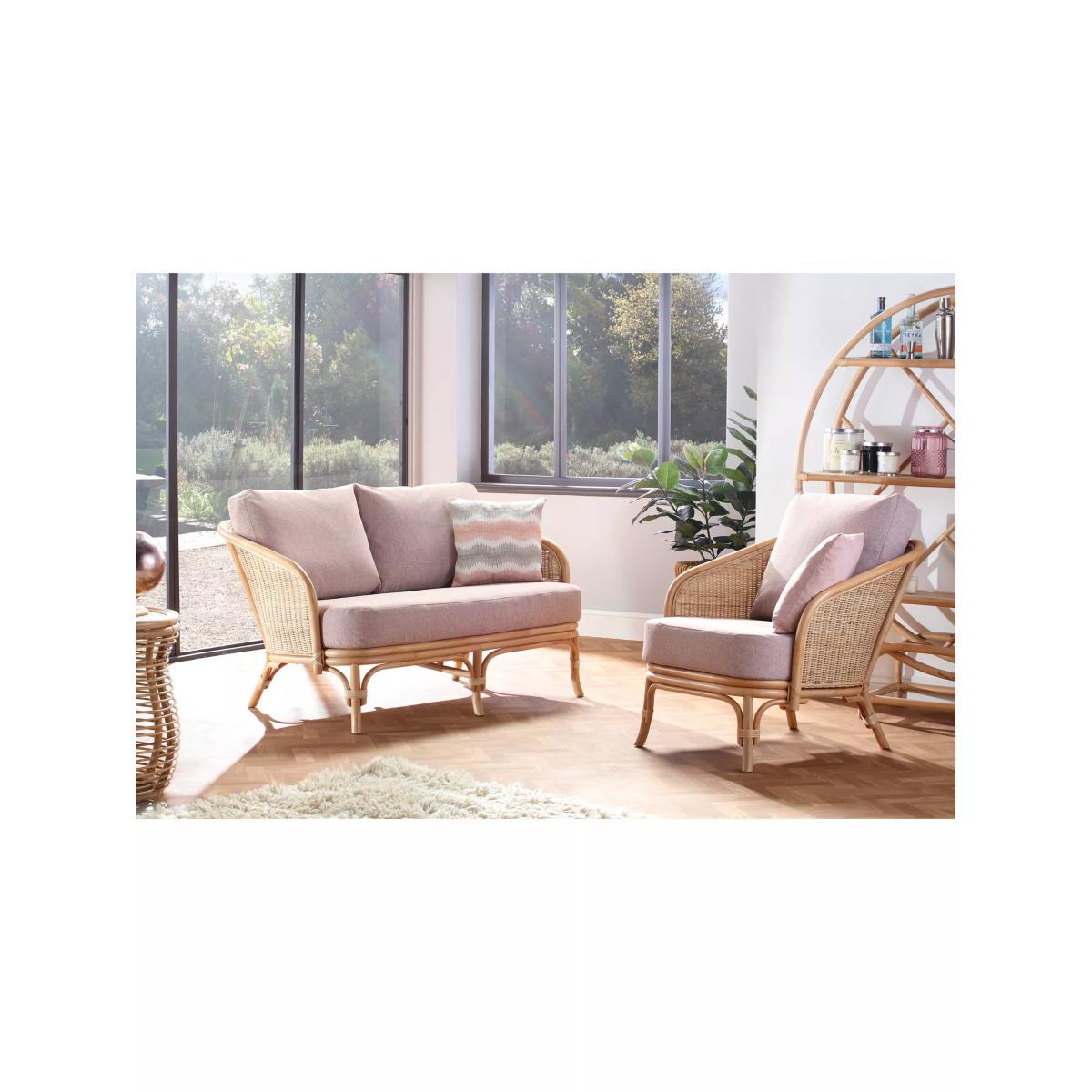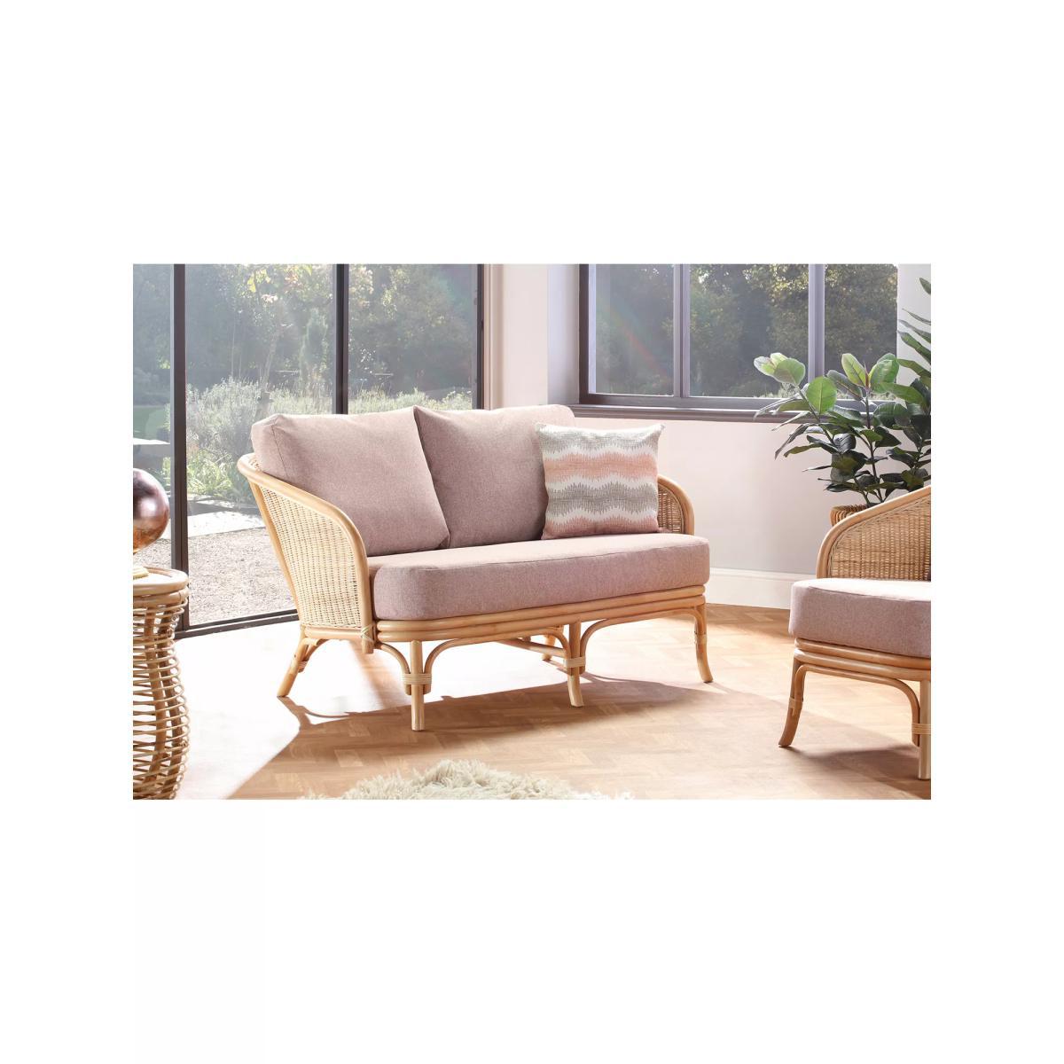 Handmade from natural rattan in a traditional shape, the two-seater Royal sofa from Desser is an attractive design for the living room or conservatory. The double cane legs are decorative and sturdy and the armrests provide added comfort. The handsewn seat and backrest cushions are made in the UK with a wrapped finish to help prevent wear and tear. Strong and durable, natural rattan is low maintenance and easy to keep clean. Wipe the furniture clean with a dry cloth or a slightly damp cloth and dry it afterwards. Keep the furniture in a dry environment and avoid leaving it under direct sunlight for prolonged periods. The furniture’s colour lasts longer if moved around a conservatory regularly to protect it from direct sun in the same spot. Sustainably sourced in Indonesia, rattan is fast-growing compared to wood alternatives and, as a companion crop, its farming encourages the preservation of forests. Every part of the rattan vine is used. Outer rattan cane is used for attractive weaving and the solid core is steamed to manipulate it into beautiful furniture shapes. Want to see it first? You may want to see and get a feel for the product in one of our shops before ordering. We'll be able to tell you where the range you'd like to view is on display.