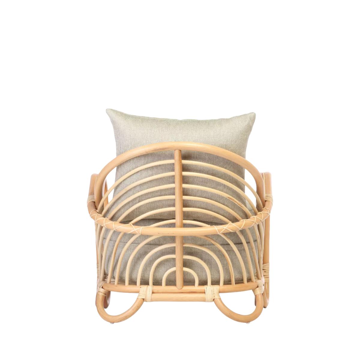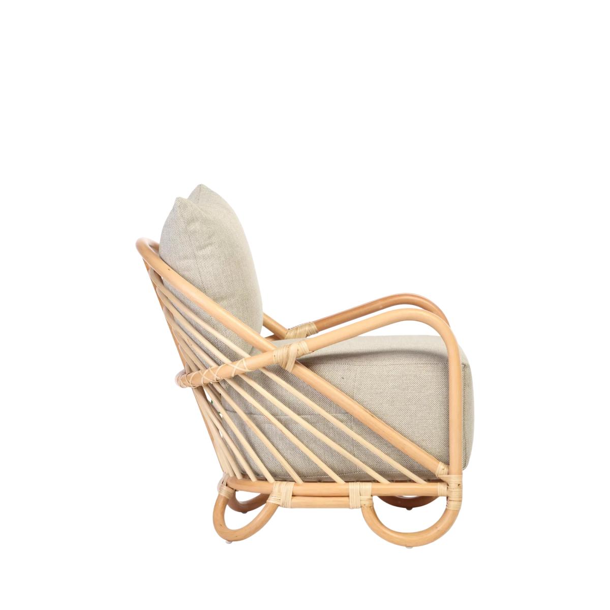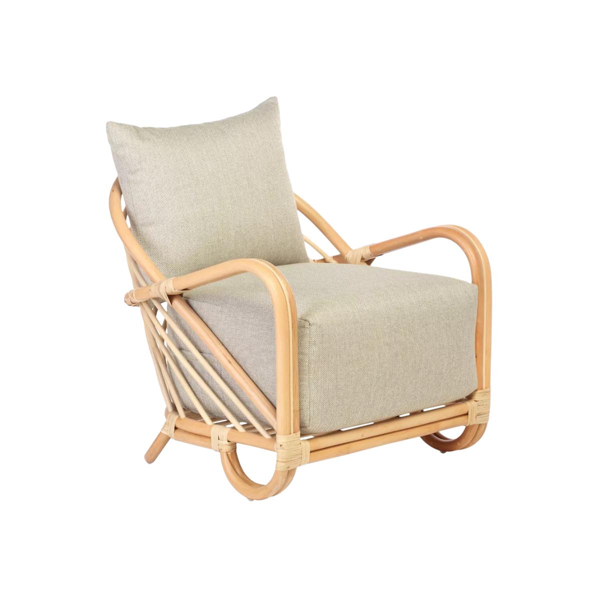 Handmade from natural rattan, the Royal lounge chair from Desser is an attractive design for an orangery, summerhouse, conservatory or living room with its sweeping cane arms and arched backrest design. Cushions are manufactured in the UK in Manchester. The cushion inners are also made in the UK, so the quality and comfort are to the highest standard. Strong and durable, natural rattan is low maintenance and easy to keep clean. Wipe the furniture clean with a dry cloth or a slightly damp cloth and dry it afterwards. Keep the furniture in a dry environment and avoid leaving it under direct sunlight for prolonged periods. The furniture's colour lasts longer if moved around a conservatory regularly to protect it from direct sunlight in the same spot. Sourced in Indonesia, rattan is fast-growing compared to wood alternatives. Every part of the rattan vine is used. Outer rattan cane is used for attractive weaving and the solid core is steamed to manipulate it into beautiful furniture shapes.