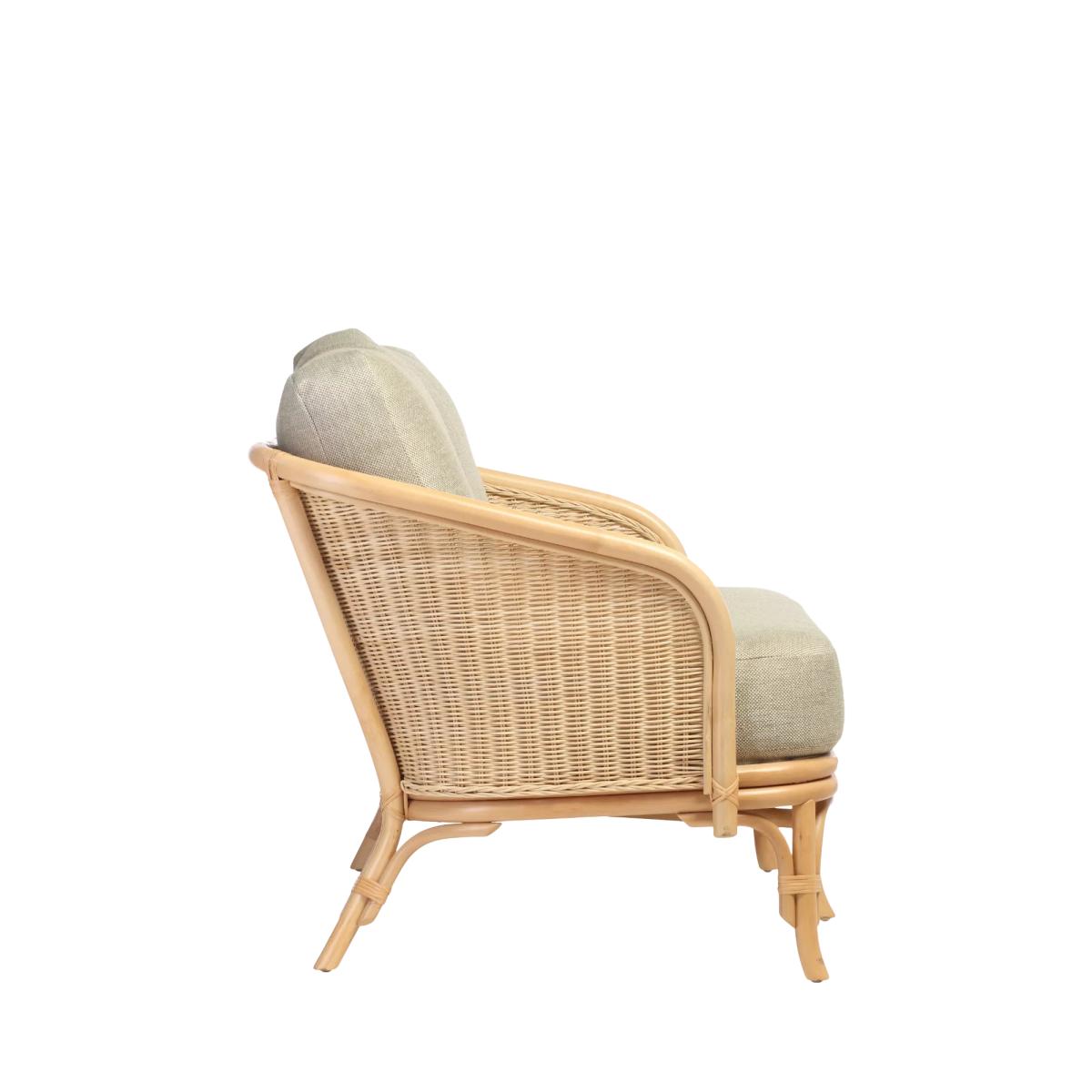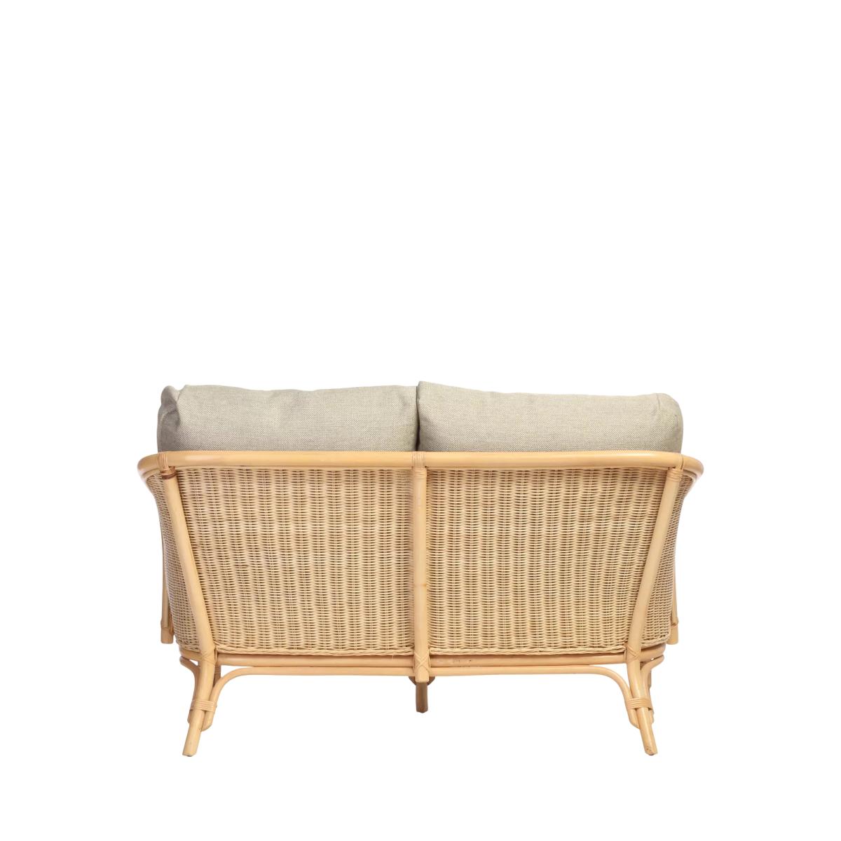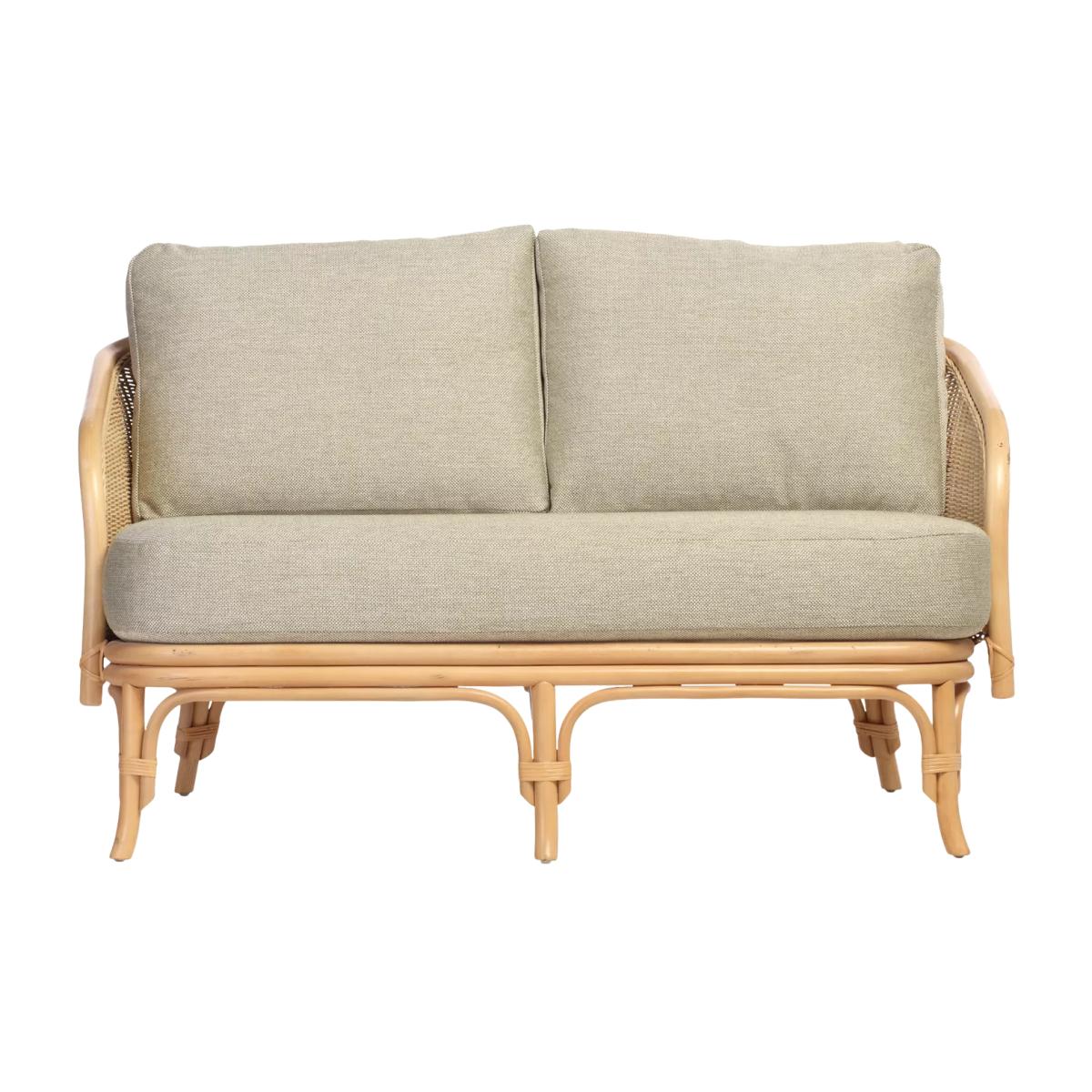 Handmade from natural rattan, the Royal two-seater sofa from Desser is an attractive design for an orangery, summerhouse, conservatory or living room with its sweeping cane arms and woven panels. Cushions are manufactured in the UK in Manchester. The cushion inners are also made in the UK, so the quality and comfort are to the highest standard. Strong and durable, natural rattan is low maintenance and easy to keep clean. Wipe the furniture clean with a dry cloth or a slightly damp cloth and dry it afterwards. Keep the furniture in a dry environment and avoid leaving it under direct sunlight for prolonged periods. The furniture's colour lasts longer if moved around a conservatory regularly to protect it from direct sunlight in the same spot. Sourced in Indonesia, rattan is fast-growing compared to wood alternatives. Every part of the rattan vine is used. Outer rattan cane is used for attractive weaving and the solid core is steamed to manipulate it into beautiful furniture shapes.
