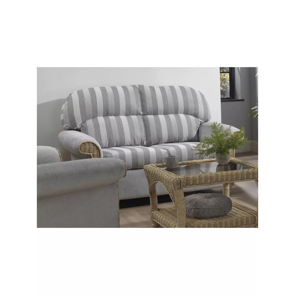 Handmade from natural rattan with a wicker weave frame, the Samford two-seater from Desser is a modern take on traditional conservatory furniture, featuring fully upholstered panelling for added comfort in the conservatory or living room. The backrest cushions and thick base cushions are made in the UK, in Manchester. The cushion inners are also made in the UK, so the quality and comfort are to the highest standard. The sofa complements matching rattan furniture in the Samford range. Strong and durable, natural rattan is low maintenance and easy to keep clean. Wipe the furniture clean with a dry cloth or a slightly damp cloth and dry it afterwards. Keep the furniture in a dry environment and avoid leaving it under direct sunlight for prolonged periods. The furniture's colour lasts longer if moved around a conservatory regularly to protect it from direct sunlight in the same spot. Sourced in Indonesia, rattan is fast-growing compared to wood alternatives. Every part of the rattan vine is used. Outer rattan cane is used for attractive weaving, and the solid core is steamed to manipulate it into beautiful furniture shapes.