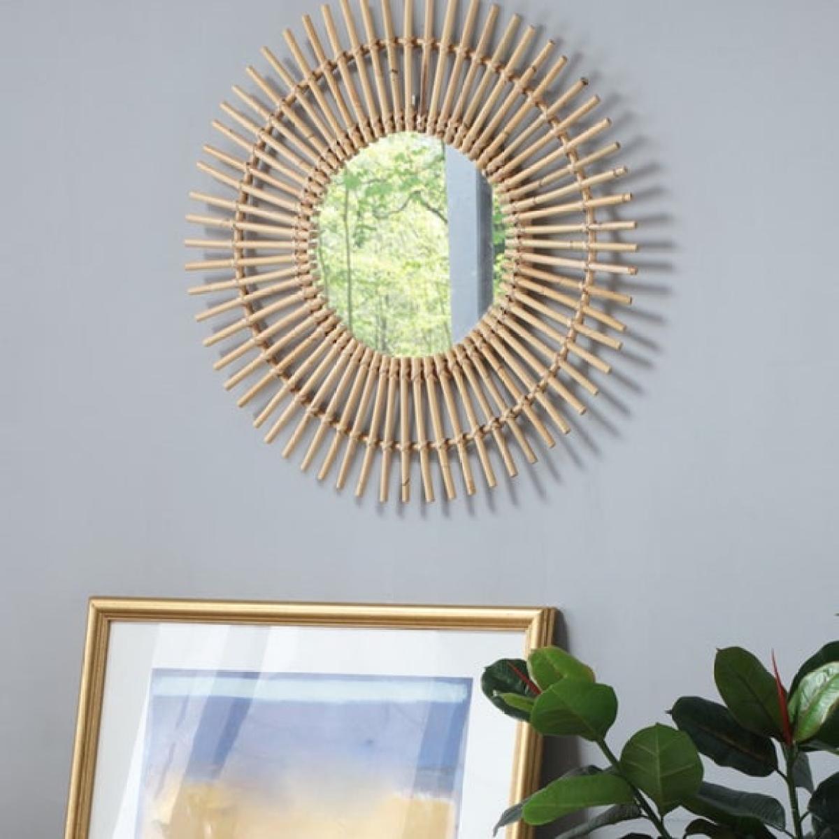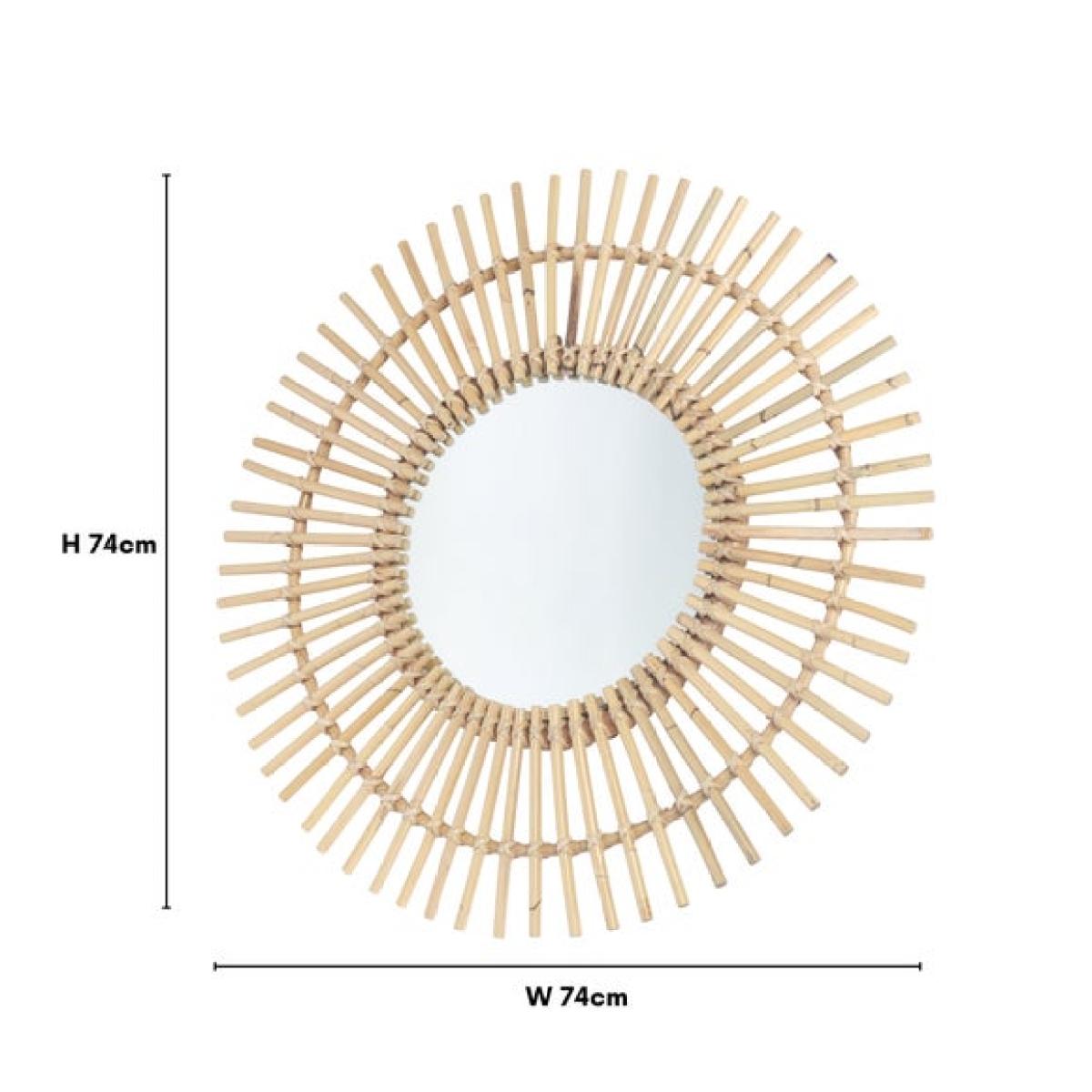 * Starburst design * Handmade frame * Premium natural rattan * Versatile design Make a statement with the Desser Starburst Round Rattan Wall Mirror, featuring a stunning starburst design handmade from premium natural rattan. Its versatile style suits a range of interiors, adding texture and character to any wall. Lightweight and easy to hang, it’s a fuss-free way to refresh your space. A bold yet elegant piece that brings warmth and charm to your home.