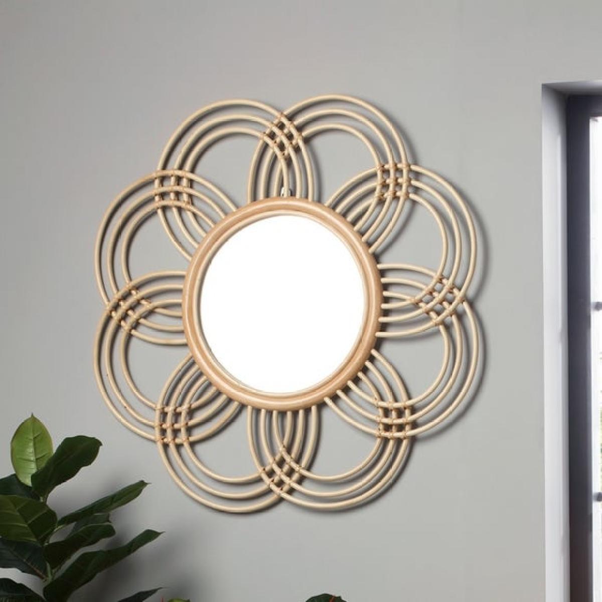 * Rattan frame * Handmade * Flower shape * Natural or black colours Brighten your space with the Desser Sunflower Round Rattan Wall Mirror, featuring an elegant flower-shaped frame handmade from natural rattan. Available in natural or black, its size makes it a versatile fit for rooms of all sizes, including bathrooms. Durable and lightweight, it’s easy to hang with just one nail. Ideal for adding texture and style to your space. A stylish piece that brings warmth and character to your décor.