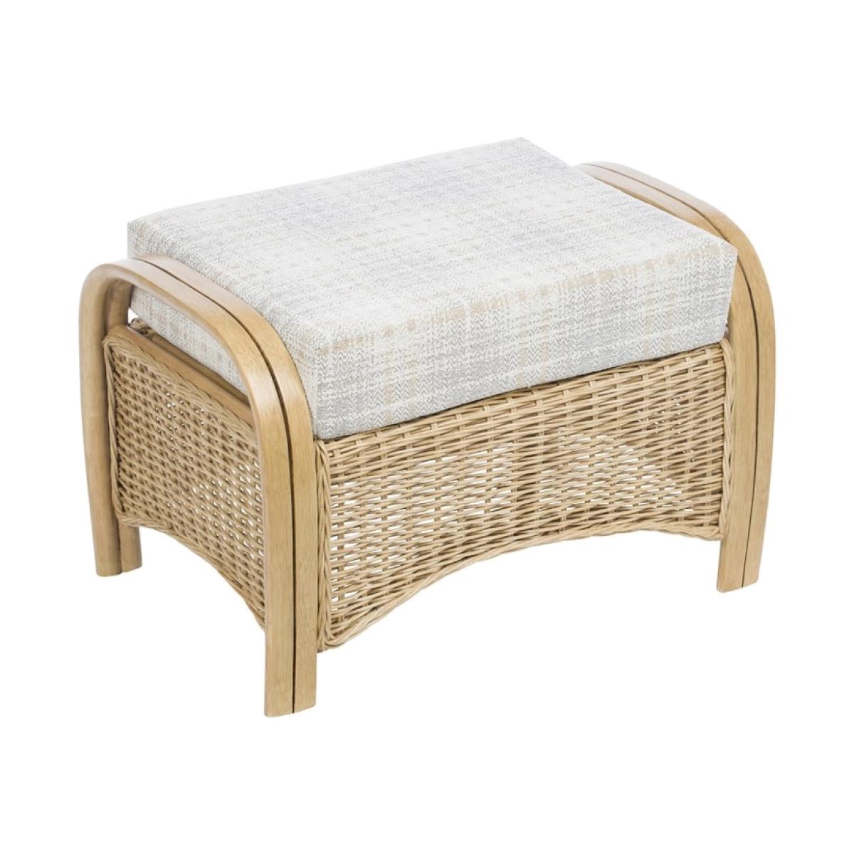 Complementing the rest of the Turin range perfectly, the Turin light oak wash footstool is designed at the perfect height to sit alongside the matching armchair and sofa. Cushion made in the UK. Natural Rattan Material. Pirelli Webbing. Dacron Wrap.  1 Year Manufacturer's Guarantee.  Dimensions: 47cm (H) x 70cm (W) x 59cm (D)