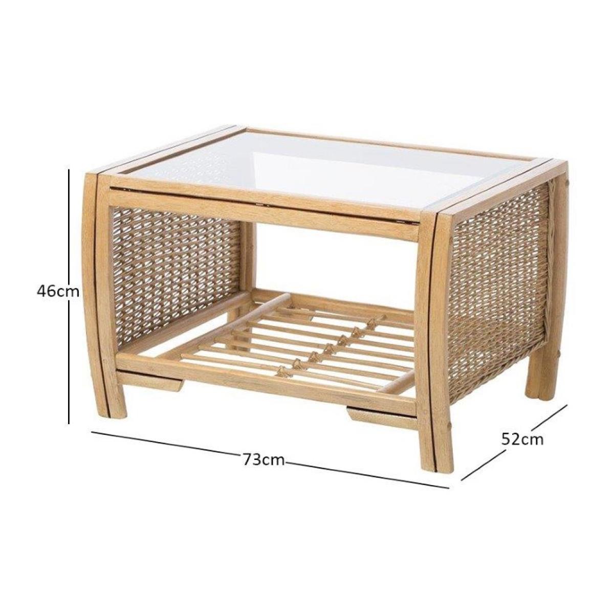The Desser Turin coffee table is made from natural rattan with a light oak or grey wash finish. It makes for a perfect centrepiece for your conservatory or living room. With a supportive base and a 5mm toughened glass coffee table, it is able to hold your usual daily household items. Additionally, it has been designed to match the rest of the range with its wicker weave sides, whilst also boasting a lower shelf to store your magazines, books and newspapers away. Easy to clean toughened glass is used making the table visually stunning but also giving household items the support that they need. Hand-crafted & hand-weaved natural cane frame through sustainable farming Manufacturer 1 year warranty included Handmade Sustainable Rattan Frames Assembled Frames No Assembly Required Dimensions: Height: 46cm Width: 73cm Depth: 52cm All screens vary in colour reproduction and whilst every effort has been made to display the colour as accurately as possible it is for guidance only.