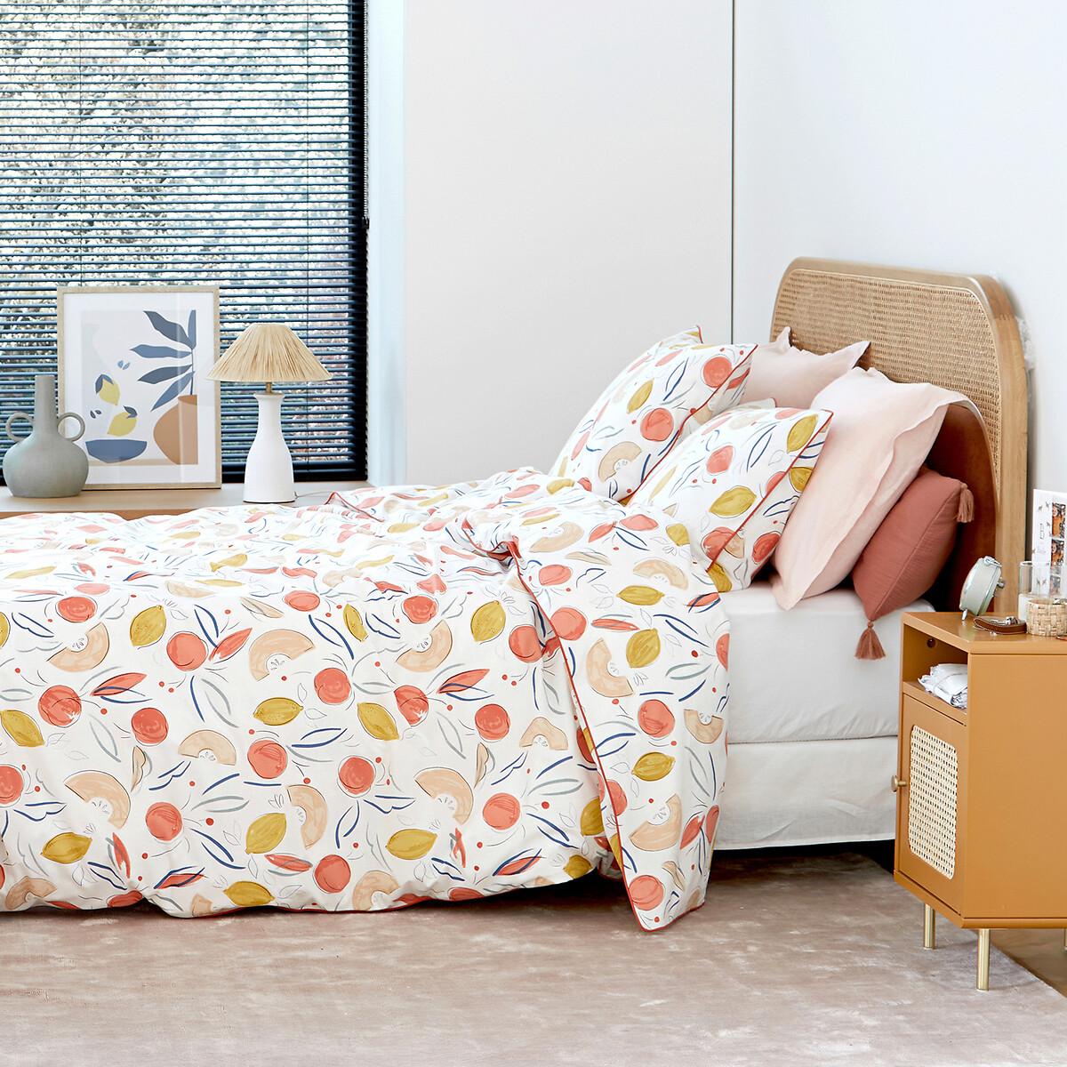 Head for the Mediterranean. Oranges, lemons... citrus fruits in vibrant colours coexist on the Mirella bed linen, subtly highlighted with a contrasting bias. A creation by our designers at La Redoute Interiors. Cotton is part of our daily lives. We love it for its suppleness and softness. Easy Care, it is ideal for the beds of young and old alike!Product Details • 100% cotton • 144 thread count • Front/back fruit print • Contrasting taped edging • Straight buttoned hem Match this item with the rest of the bedding in the range for a stylish bedroom. And you can mix and match it with different colours and styles from our other bedding ranges when you want to change things up and create your own unique look.. Care Advice • Machine washable at 60°C • By washing your laundry at 40°C instead of 60°C, you limit energy consumption. Dimensions • 140 x 200cm: Single • 200 x 200cm: Double • 240 x 220cm: King • 260 x 240cm: King • OEKO-TEX® Standard 100. Standard 100 certification by OEKO-TEX® tests textile products for harmful substances via an independent, international label.