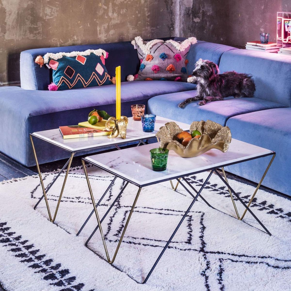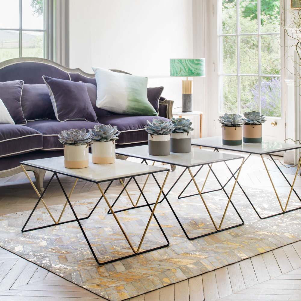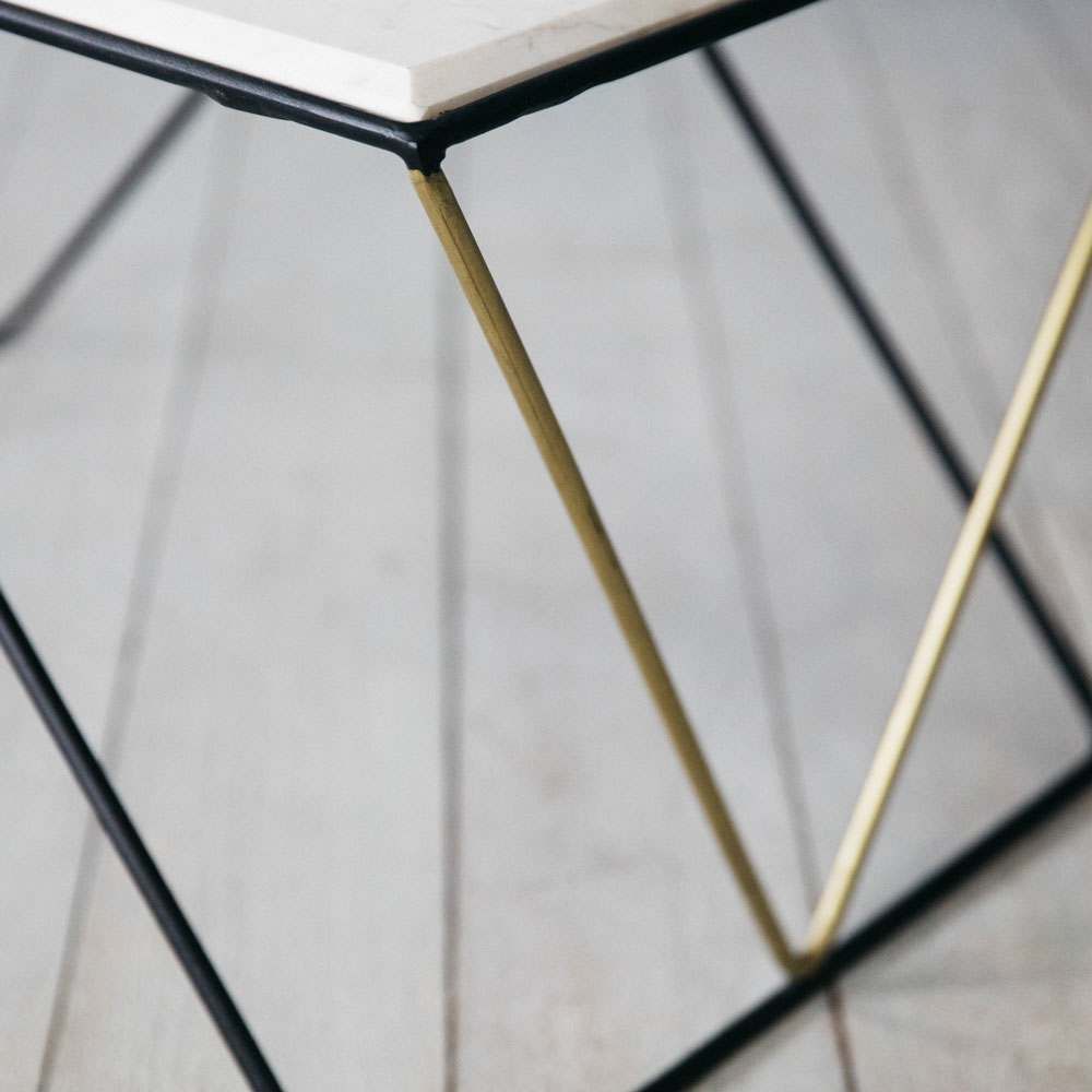 A striking combination of natural white marble and black and gold metal, our Detroit Marble Coffee Table is a marvellous addition to contemporary styled living rooms.;The natural marble top is encased within the modern metal frame for a truly unique look. Make a bold statement by positioning three tables together, creating a stylish focal point for your room.