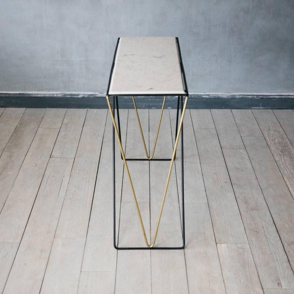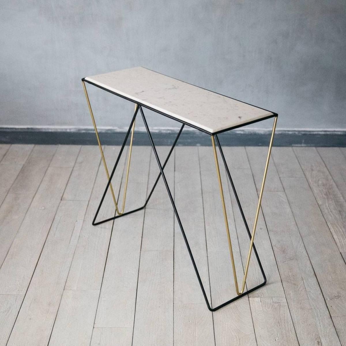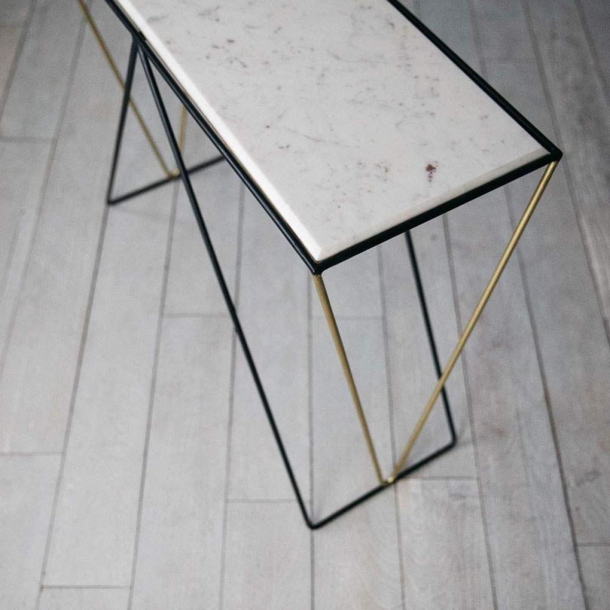 I love the marble console in this piece - it adds a touch of elegance and brings a sophisticated contrast to more casual or rustic interiors. It's versatile enough to work well in both modern and traditional settings; pairing it with metallic accessories or colourful accents can really help it stand out. Practical styling tips include keeping the surface uncluttered for a sleek look, or adding a statement lamp and a few decorative items for visual interest. Its slender frame makes it a great option for narrower spaces, and it can serve as a stylish entryway table or be incorporated into a living room as a side piece.
