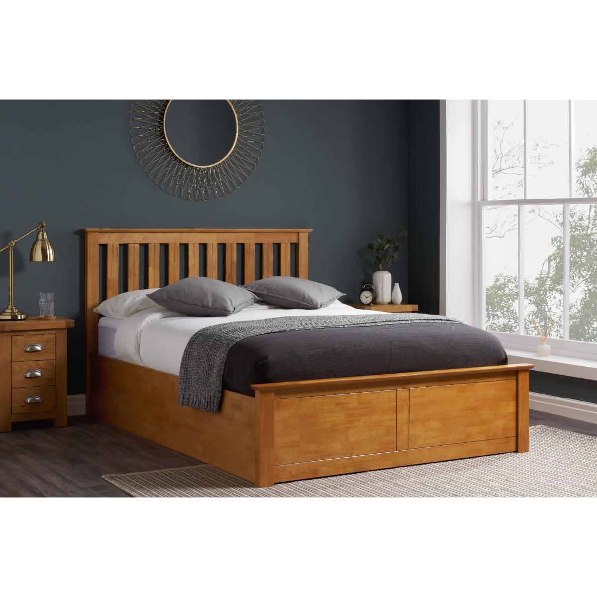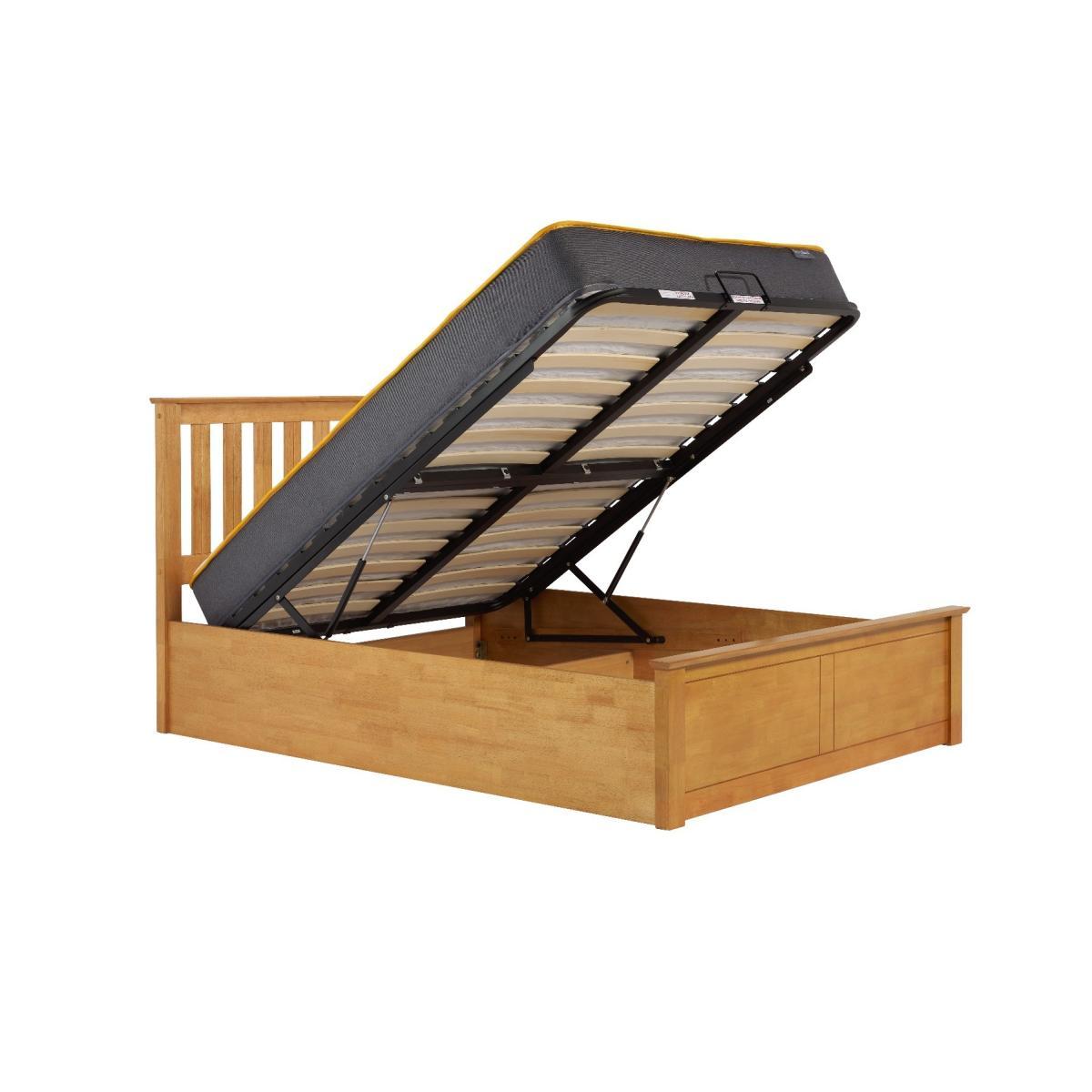 The stunning oak Detroit ottoman bed is a classic design which is also practical. The opening base offers plenty of storage and is support by strong gas lift arms.210.2cm length. Plenty of storage. Strong gas lift arms Sprung slatted base for ultimate comfort