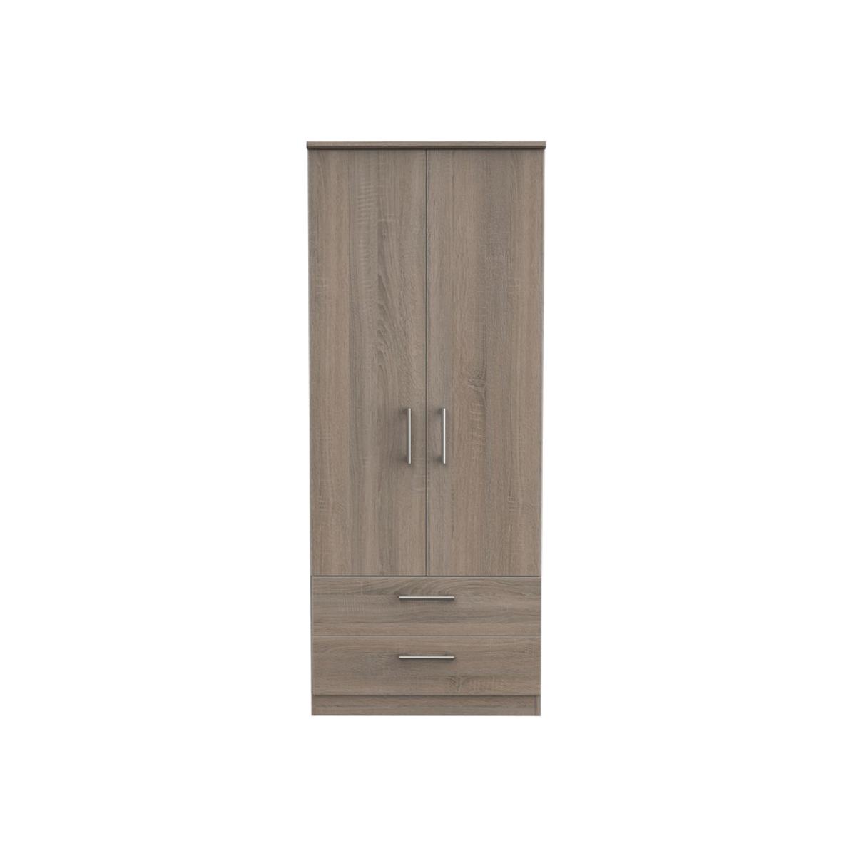 Devon 2ft6in 2 Drawer Wardrobe in Darkolino Oak - Darkolino (Dark) Oak