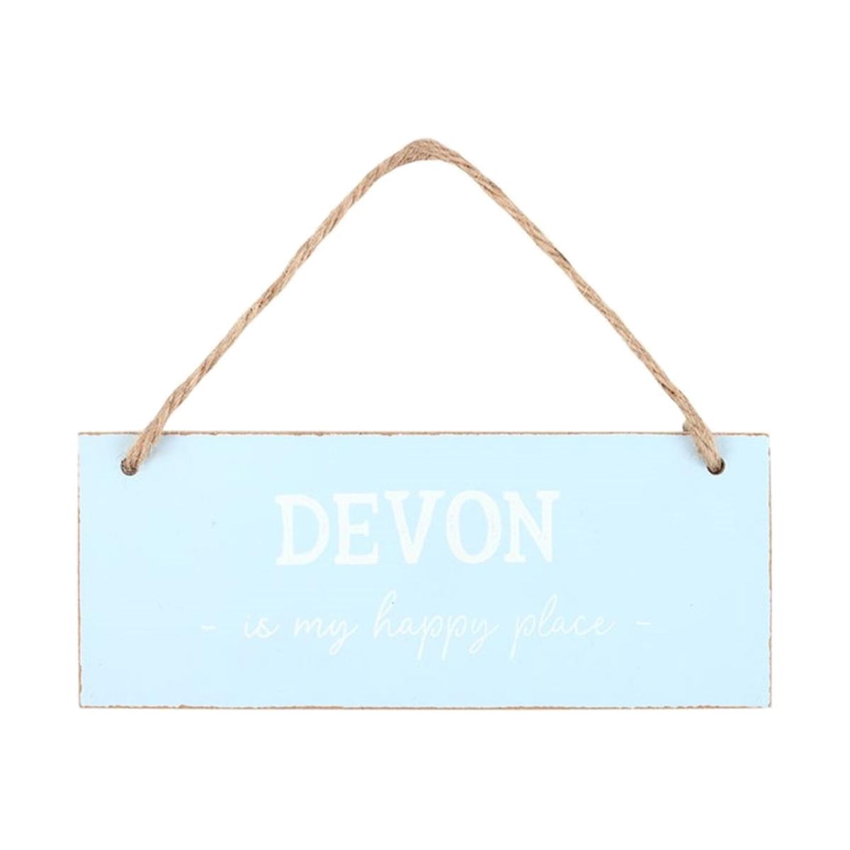 This simple and sweet hanging sign features slightly distressed edges and crisp white text that reads 'Devon is my happy place'. Its small size and cheerful message make it a perfect souvenir for visitors to cherish their fond memories of Devon and its picturesque English coastline.