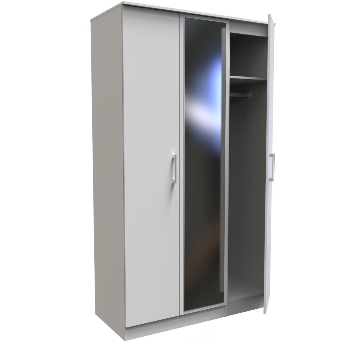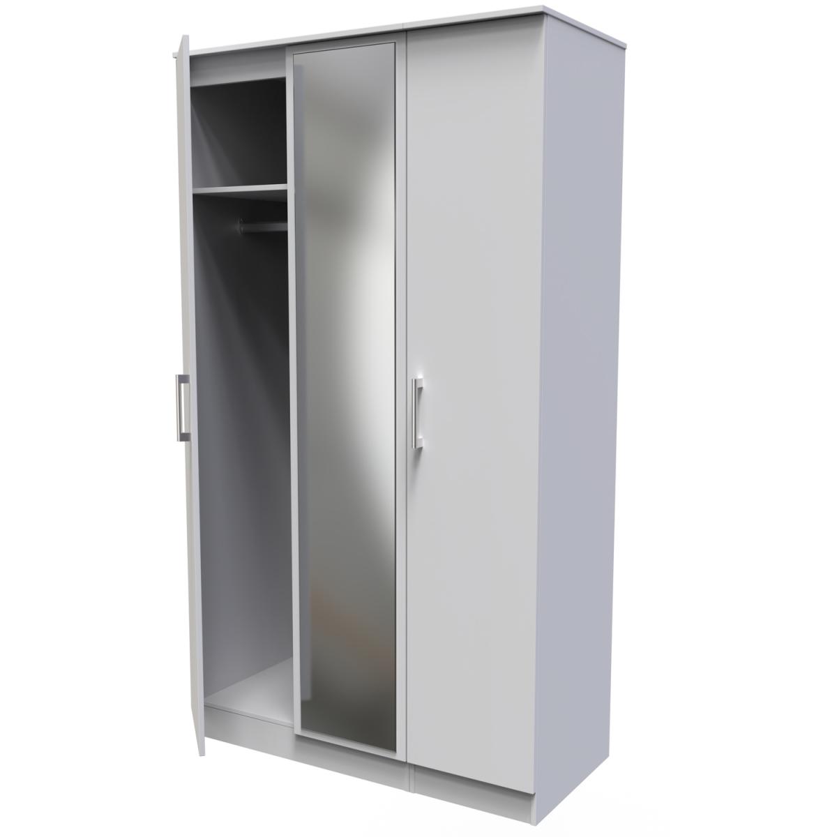 This full height triple 3 door wardrobe is perfect for any bedroom when a normal wardrobe is just not large enough. Also features a full height single mirrored door. With its sleek metal handles and wood effect finish this stunning design gives both a traditional and contemporary feel to any room. Available in a number of different pieces to cater for your individual storage needs. All our furniture is made in the United Kingdom, to the highest quality. It is delivered direct to your location of choice by one of our two man delivery teams, and come full assembled (although legs may be removed to prevent damage in transit).