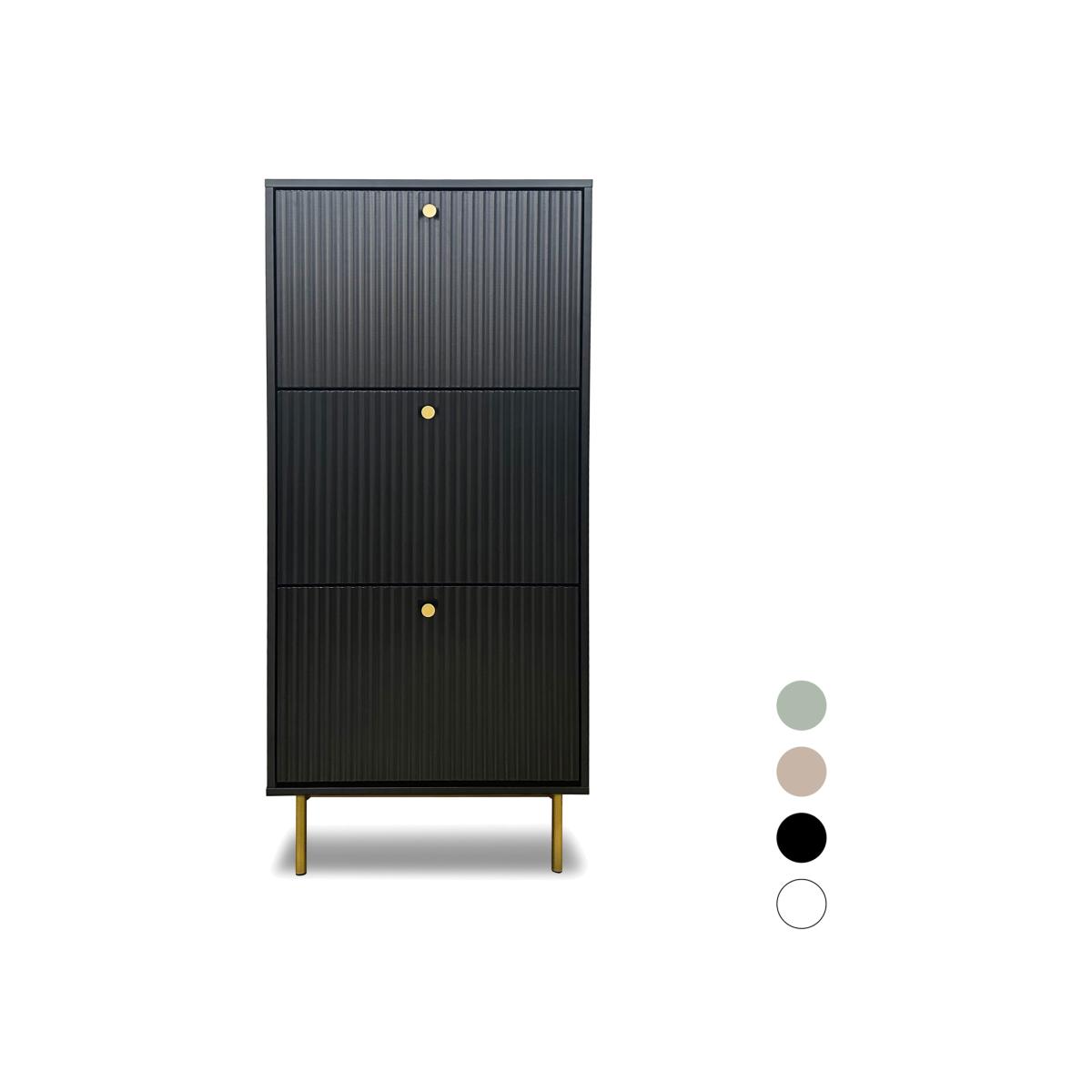 The Devon shoe cabinet is an elegant and practical solution for organising your footwear. Constructed from durable MDF and available in four sophisticated colours - white, black, grey, and sage - this shoe cabinet provides ample shoe storage while enhancing your home's decor. The Devon shoe storage cabinet features multiple compartments, allowing you to store shoes neatly and efficiently. This tall shoe cabinet design maximises vertical space, making it an ideal shoe storage vertical solution for smaller areas. The shoe cabinet storage options cater to various needs, whether for a large family or a single user with an extensive shoe collection.