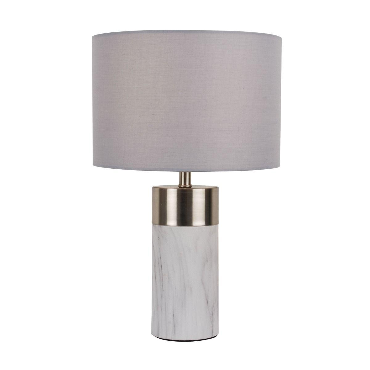 Amazing Marble and Nickel Table Lamp This absolutely stunning 2 toned cylindrical lamp is perfect for bedrooms, living rooms or hallways, adding a soft glow to any living space. With its beautiful marble effect finish, the Devota is sure to catch the eye and wow, wherever it is placed. Choose from either our warm white or cool white E14 bulbs Amazing Marble and Nickel Table Lamp This absolutely stunning 2 toned cylindrical lamp is perfect for bedrooms, living rooms or hallways, adding a soft glow to any living space. With its beautiful marble effect finish, the Devota is sure to catch the eye and wow, wherever it is placed. Choose from either our warm white or cool white E14 bulbs