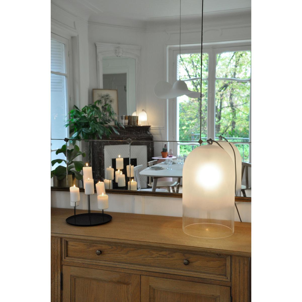 Simple and evanescent, this glass dome naively tries to keep the light trapped inside. On a desk or a side table, Dewy creates a cosy atmosphere, much like an image of the morning dew.