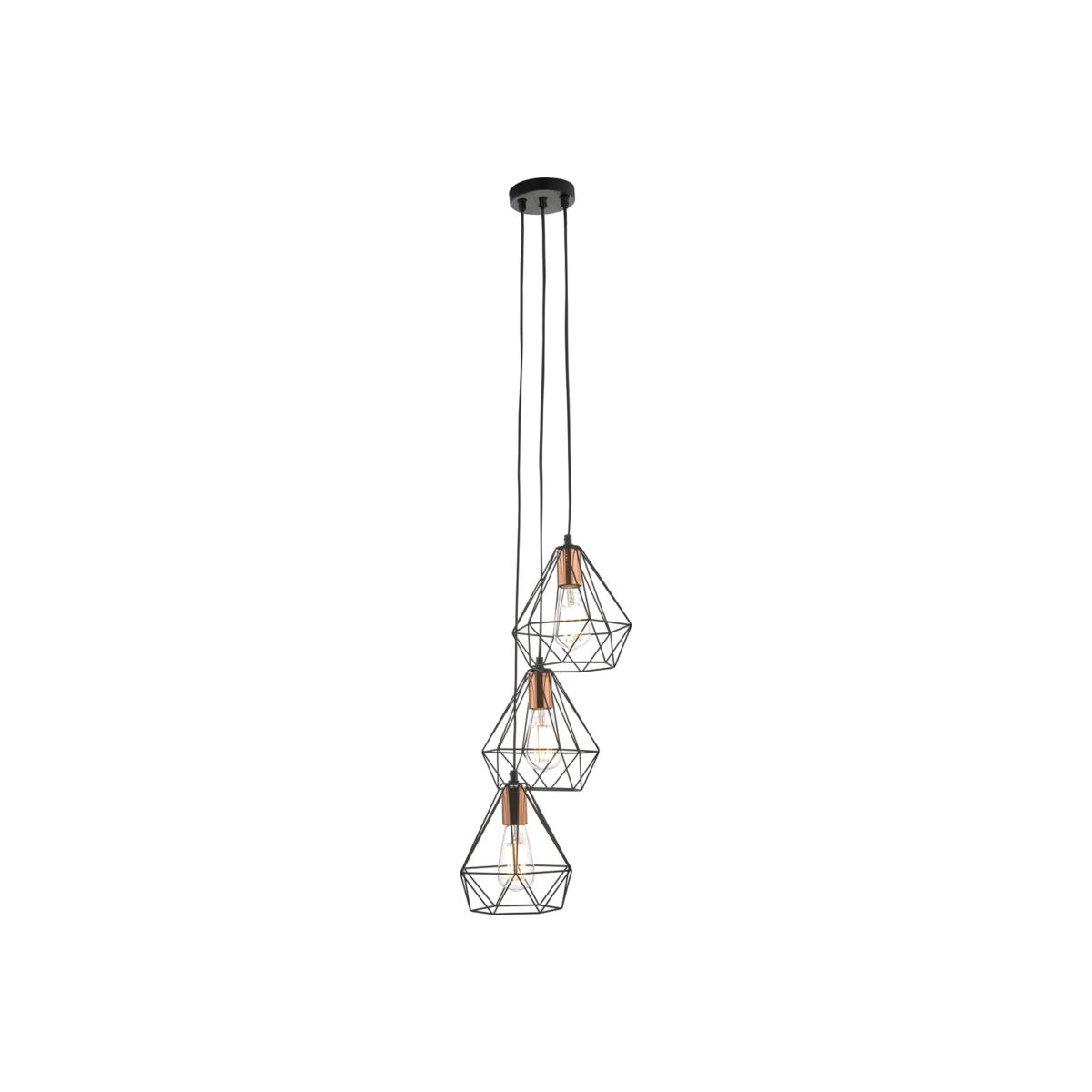 Industrial Pendant Ceiling Light in Black & Copper. A statement fitting, the Deyon Pendant Ceiling Light is a striking piece. The 3 Light cluster pendant is an industrial inspired fitting with black metal frames and copper finish lamp holders. Pair with vintage light bulbs to achieve a truly industrial look. We think this light looks best with any of our E27 4w LED Vintage light bulbs for a rustic, warm glow.