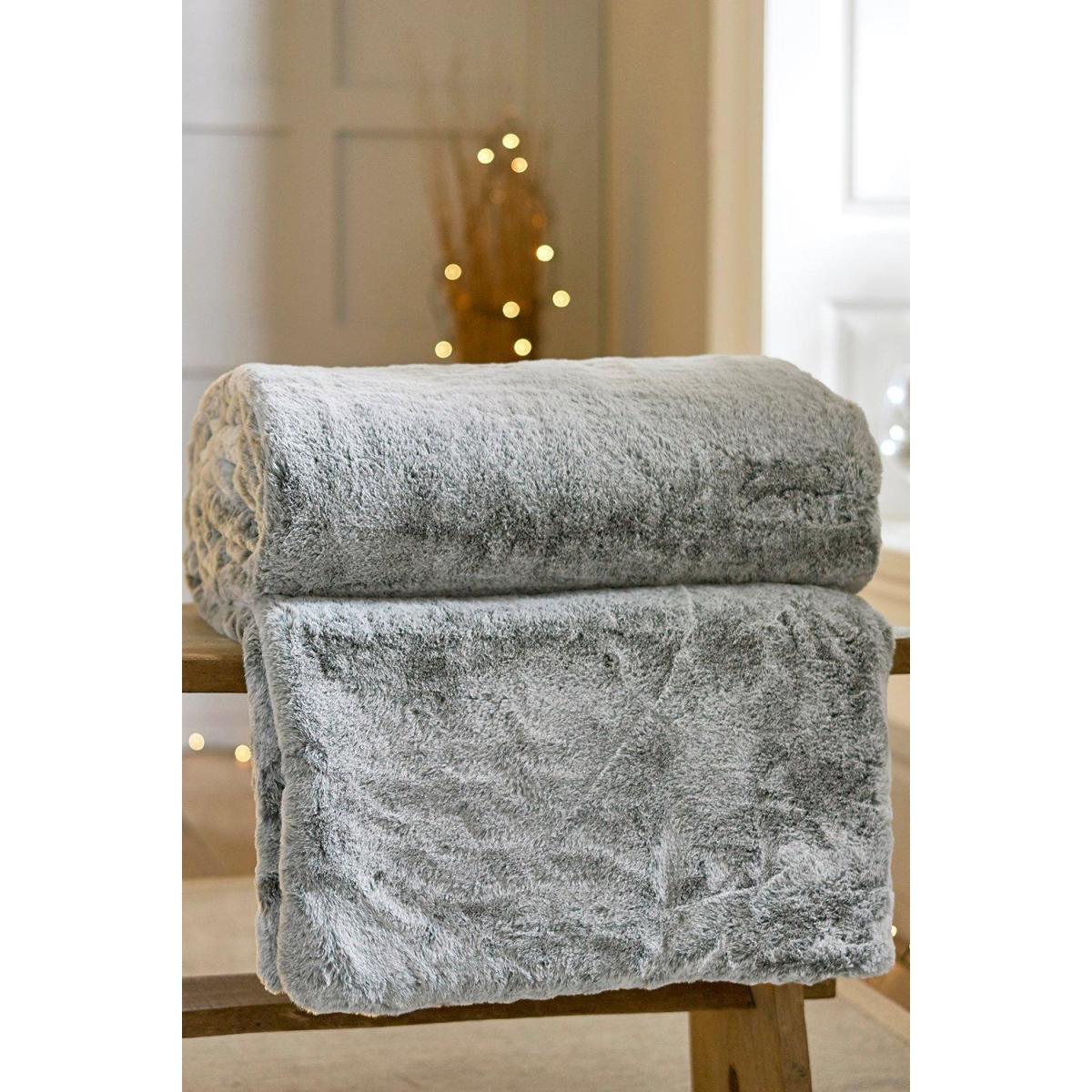 Wrap yourself in cosy comfort with the Deyongs Alaska Faux Fur Throw. Its ultra-soft touch and luxurious quilted design provide extra warmth, making it perfect for those chilly outdoor days or adding a decorative touch indoors. Whether you're lounging on the couch or using it as a stylish accent, this throw is a must-have for the whole family – even your pets will love it Colour - Silver 150 x 200cm !00 % Polyester Machine Washable 40° Machine Washable Ultra Soft & Warm All screens vary in colour reproduction and whilst every effort has been made to display the colour as accurately as possible it is for guidance only