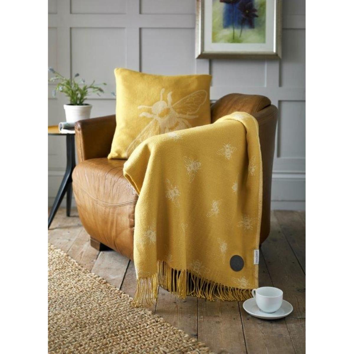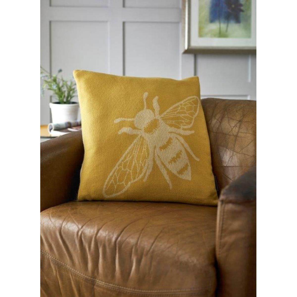 Deyongs Bee Acrylic Filled Cushion - Ochre, Jacquard