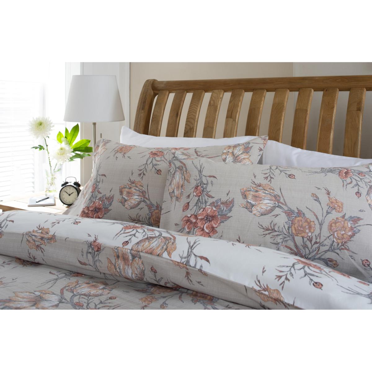 This elegant and stylish 200 thread count easy care design, featuring beautiful fire tulips on a textured ground is both beautiful yet functional. 55 of the cotton in this product is sourced through the better cotton initiative.. Features:. *55 Cotton 45 Polyester *200 Thread count *Reversible *Single duvet includes a single pillowcase *Double, King and Super King duvet includes a pair of pillowcases *Designed in Great Britain Care Instructions:. *Machine washable *Tumble dry Please note. All screens vary in colour reproduction and whilst every effort has been made to display the colour as accurately as possible it is for guidance only..