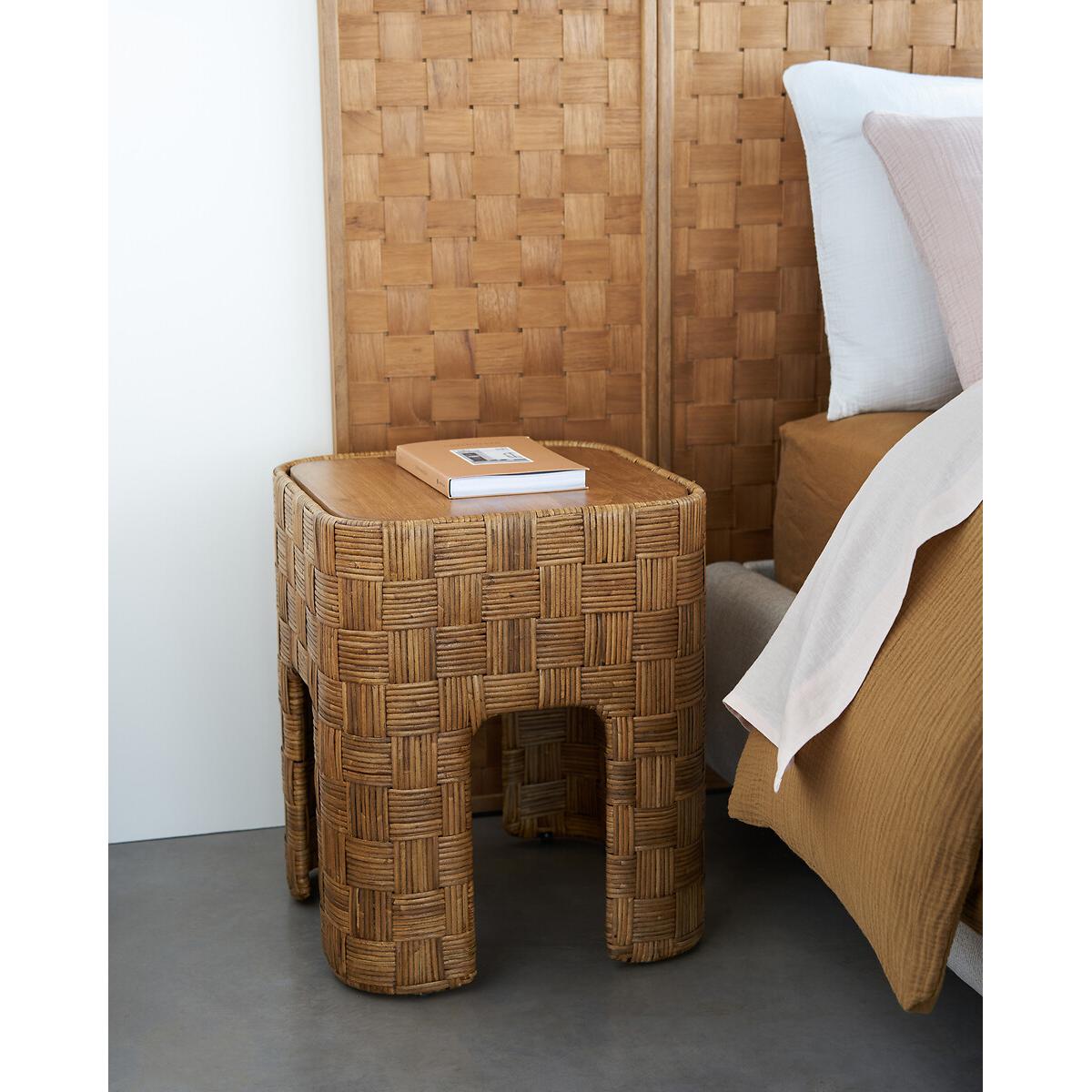 Made in Indonesia, this curvaceous bedside table showcases the traditional wickerwork of Indonesian artisans. Its woven rattan fibre combines harmoniously with its matt teak top. Creating a piece with tropical accents that works anywhere. An exclusive design by AMPM.Product Details • Structure in woven rattan fibre • Solid teak top, water-based acrylic finish • FSC® certified wood. Dimensions • Width: 40.5cm • Height: 50cm • Depth: 40.5cm • Sold pre-assembled. • WOOD FROM SUSTAINABLY MANAGED FORESTS. FSC® certified wood comes from forests that are environmentally, socially and economically well managed. Dimensions and weight of parcel • 1 parcel • L47 x H58 x D47cm. 15kg.