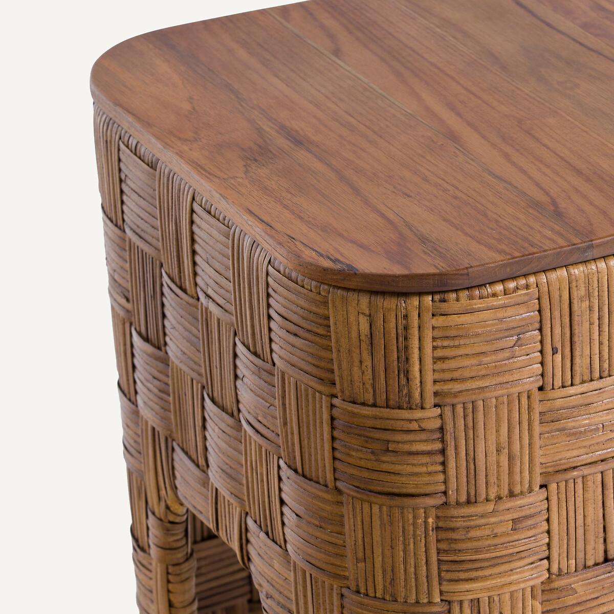 Dhalia Bedside Table in Solid Teak and Woven Rattan